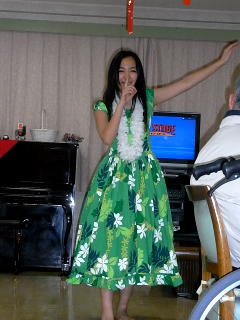 敬老会で好評だった近隣中学の学生さんのフラダンスを、