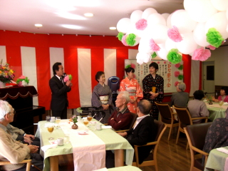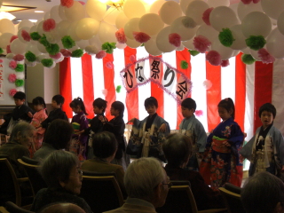 2012.03.20 シルバービレッジ日野東館 ひな祭り会 少し前のお話になりますが・・・ ひな祭り会が行われました。 午前中は、園児によるお遊戯、昼食時は職員が着物をきて配膳しました。 いつもと違う装いをするって華があっていいですね。 午後は民謡を鑑賞しました。 Writer:鈴木 祐佳