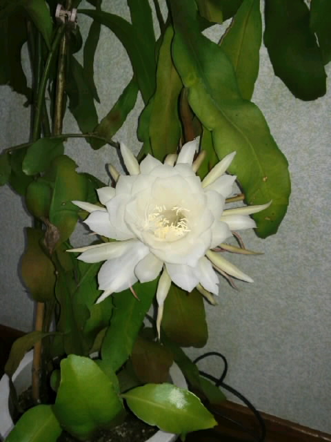 2014.08.19 こちら在宅福祉部です! 咲きました。 遂に咲きました(^_^)v 7年前、支援に入っていた利用者様に挿し木にしてごらん…と20cmほど茎をいただいた月下美人です。 夜に花を咲かせ、数時間で閉じてしまい、まさに!?美人薄命(笑) 大きく純白色に咲き開き、なんて力強い花なのでしょう… 不思議な力を感じます。 在宅福祉部 中澤寿子