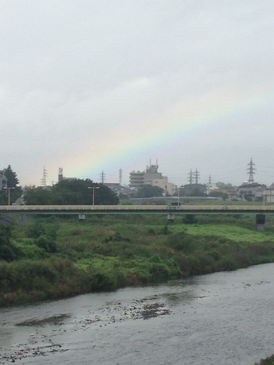 2014.09.30 こちら在宅福祉部です! 気持ちも七色になりました。 不天候の中久しぶり八王子の空に虹が出てました。虹を見るときっと良いことがあると信じてます。 浅川沿いで両親に手を引かれ幼く見た虹を思い出し、懐かしくなりました。 在宅福祉部 writer: 中井紫鶴