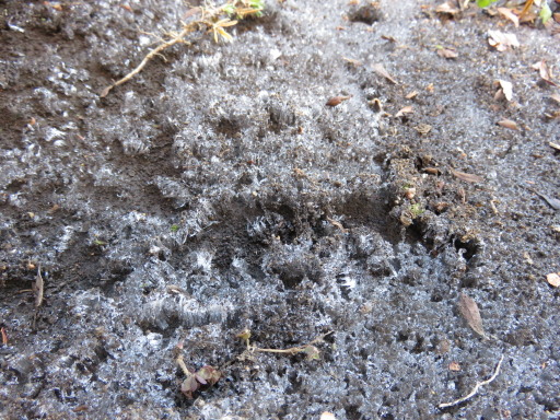 今朝、玄関に出ると9時を回っても日陰には霜が・・・