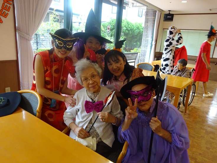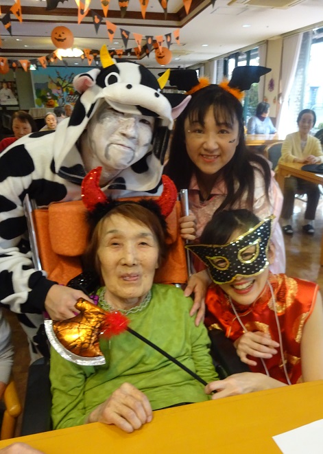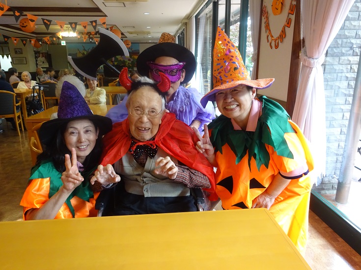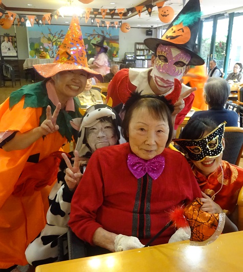 職員だけでなく、ご入居者の方も仮装をして頂き、ご一緒にお写真を撮らせて頂きました!!