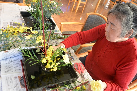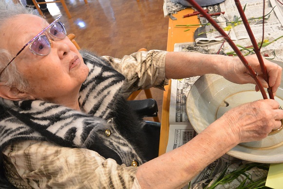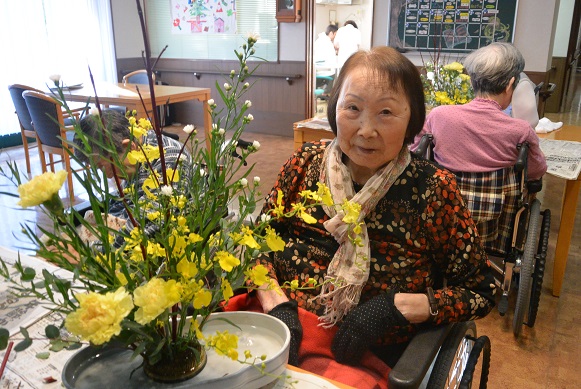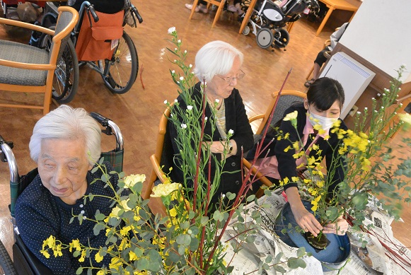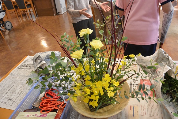2015.12.08 シルバービレッジ日野 ✿生け花教室✿ 11月の生け花教室を行いました(^_^) ✿サンゴミズキ ✿ユーカリ ✿クジャク草 ✿カーネーション(黄) ✿オンシジューム 全体的に明るい色でお部屋が暖かくなりますよね(^_-)-☆ writer 介護課 松田