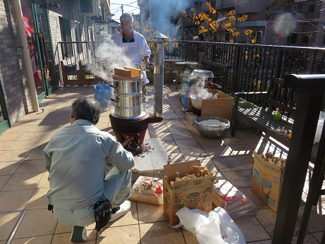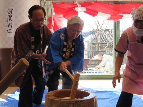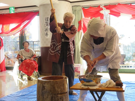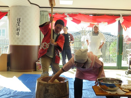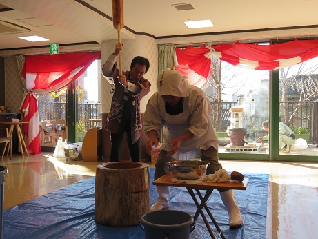 平成27年12月28日(月)1階ホールとテラスにおいて、もちつき大会を開催しました。