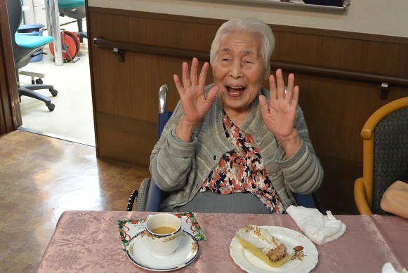 おやつは、ケーキをご用意させて頂き、召し上がられた後は、皆様と
