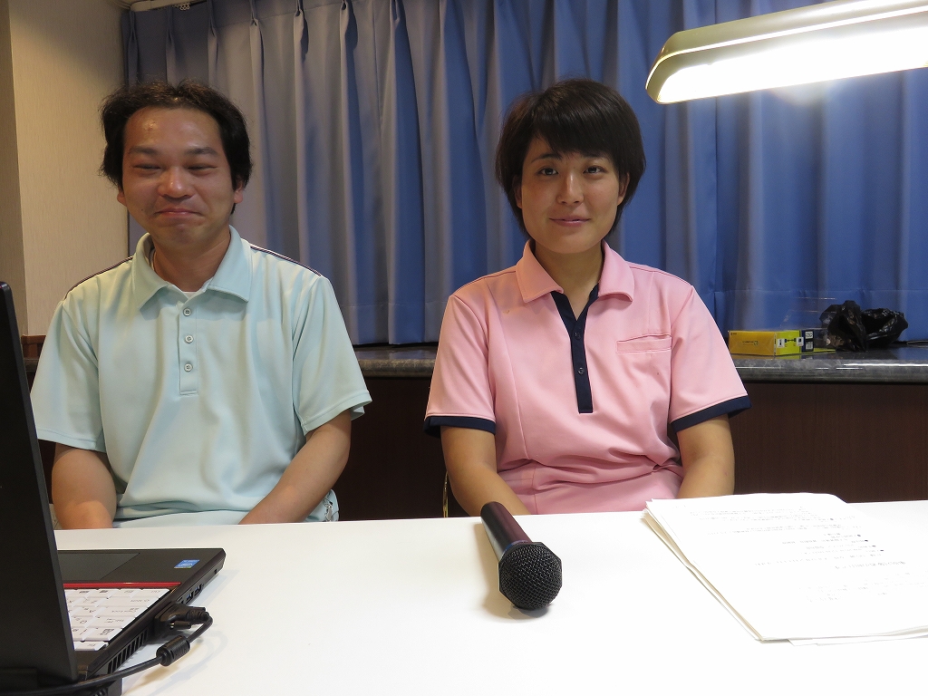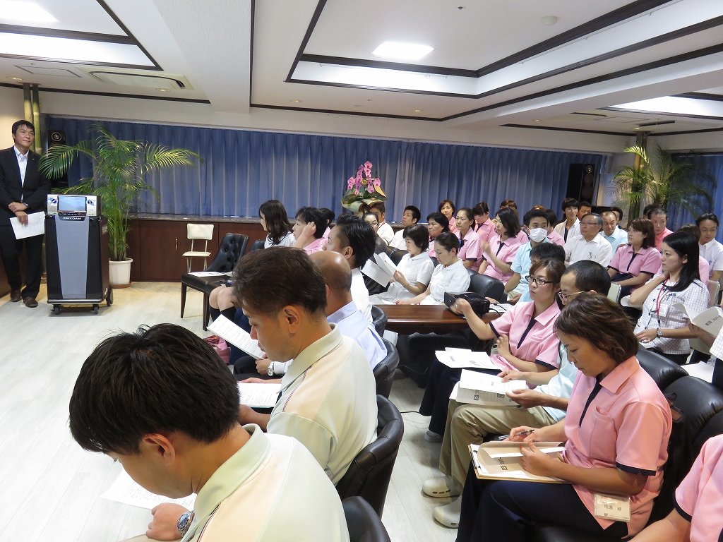 吉田さんがそれぞれ発表しました。鈴木副施設長が司会を務め、社長の挨拶から