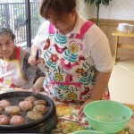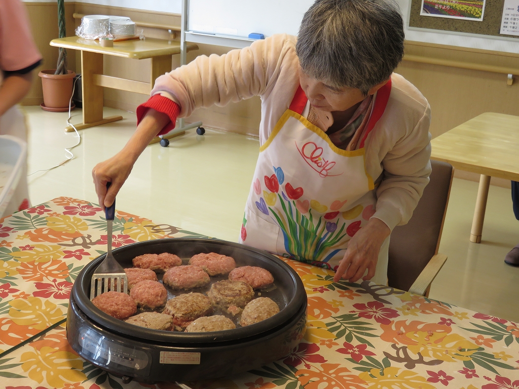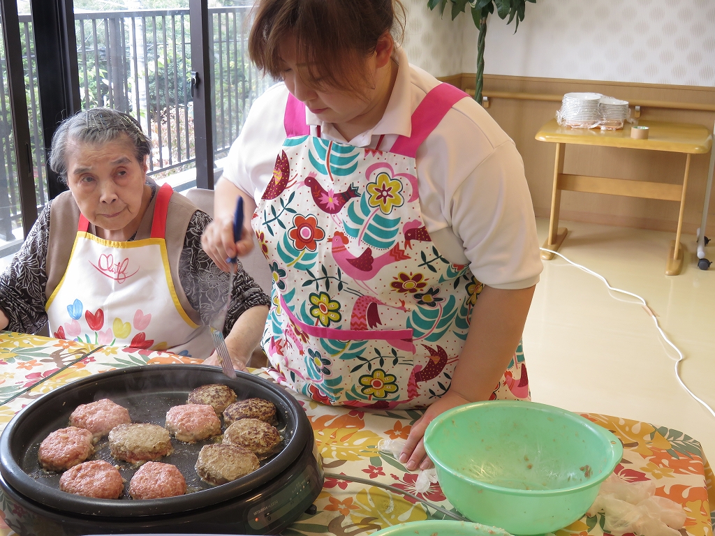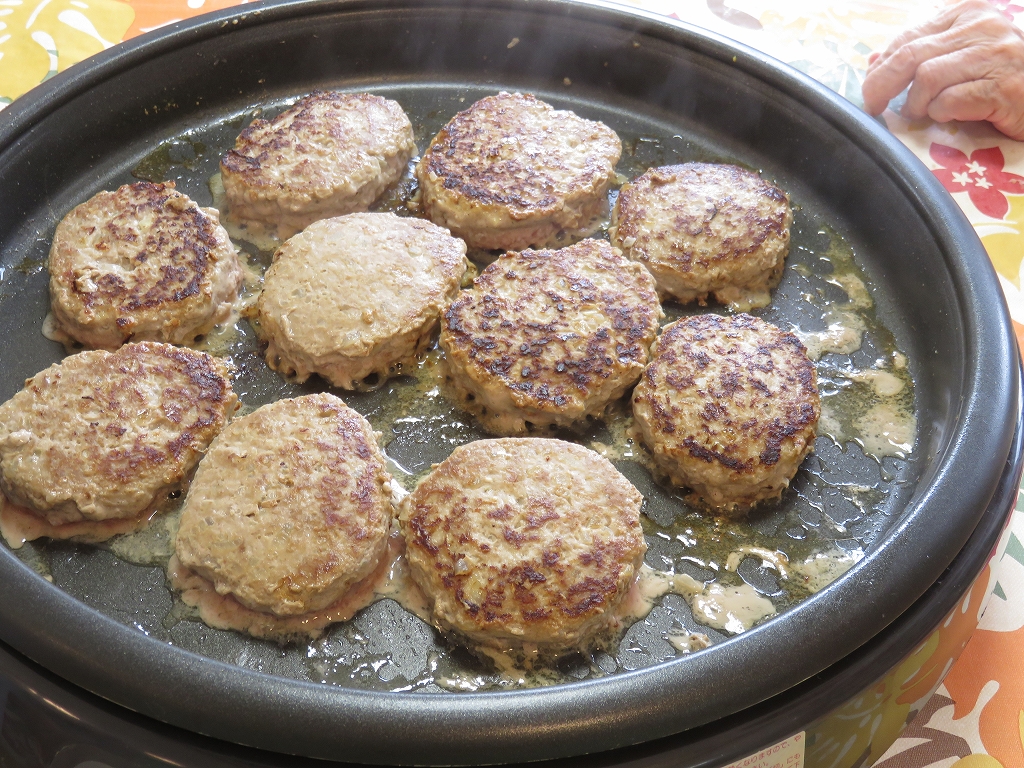 その後、ひき肉をあわせて、形を作り、ジュワーと