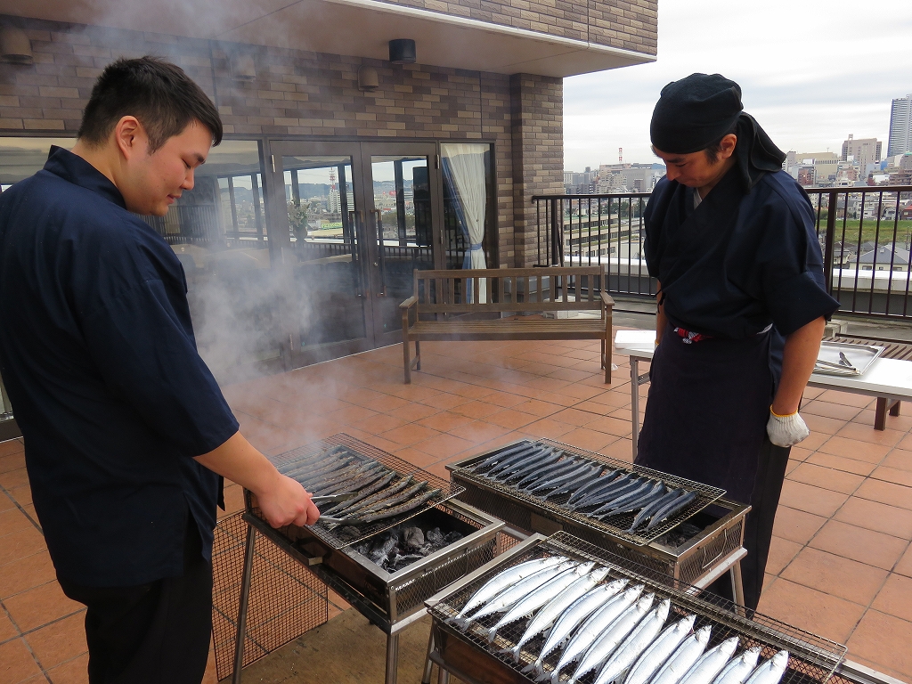 サンマ焼きを行いました。サンマは大きく、身がたっぷり入っている