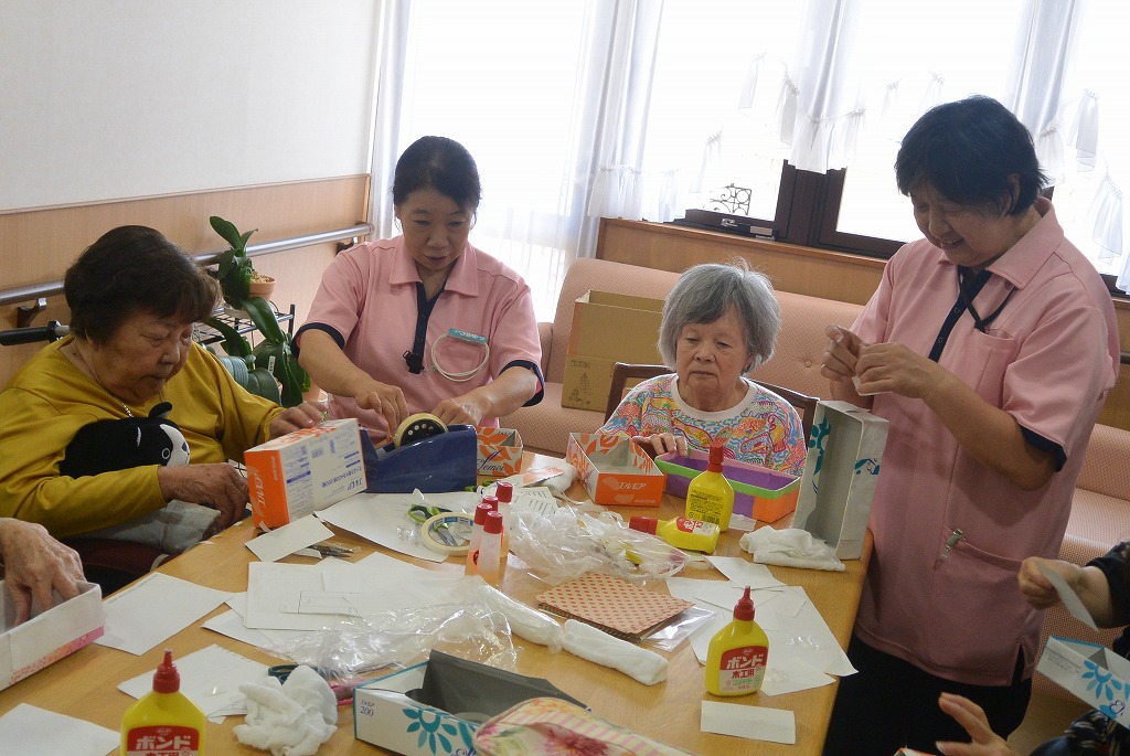 4階の方は女性を中心にティッシュ箱を使った創作を。