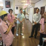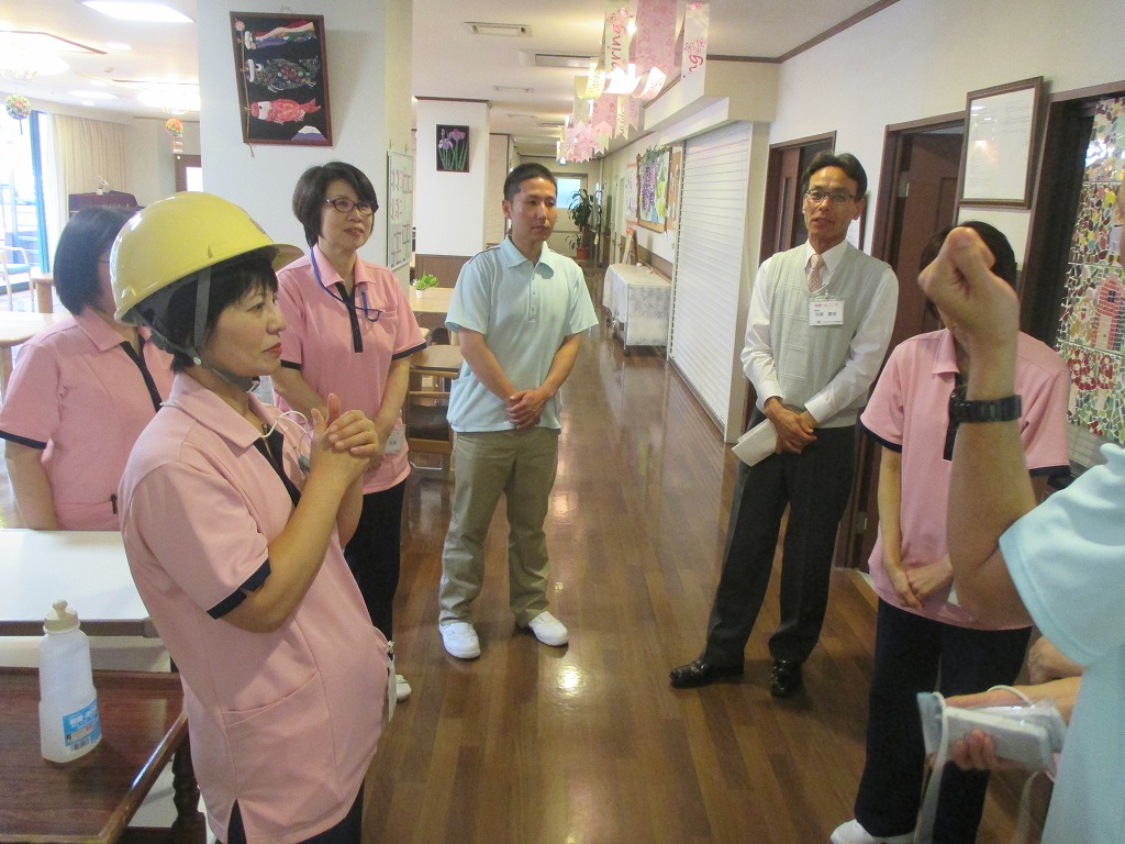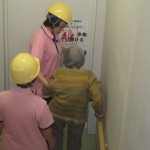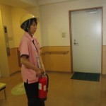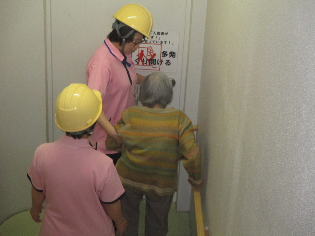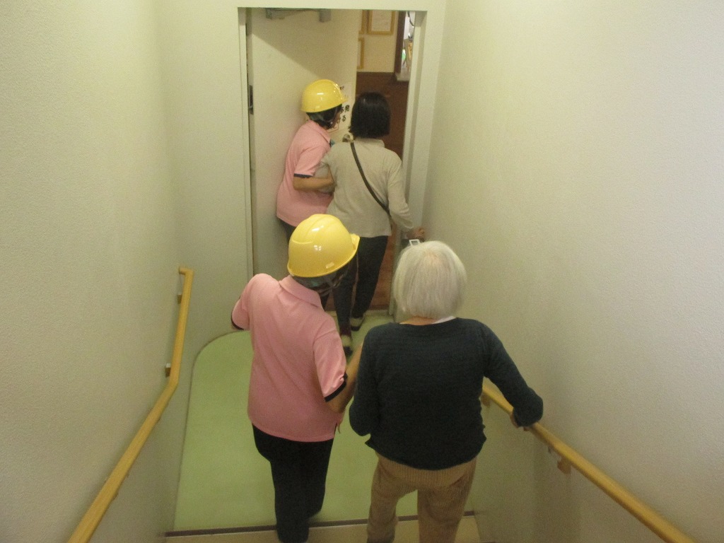 ご入居者にも協力して頂き、階段を使って1階まで避難して頂きました。