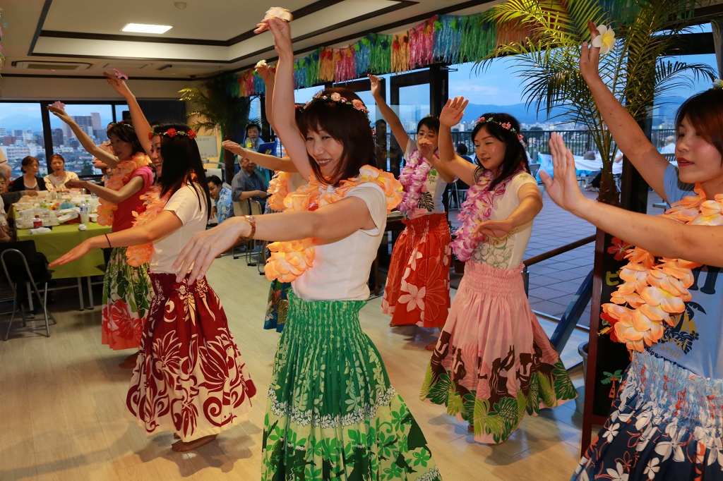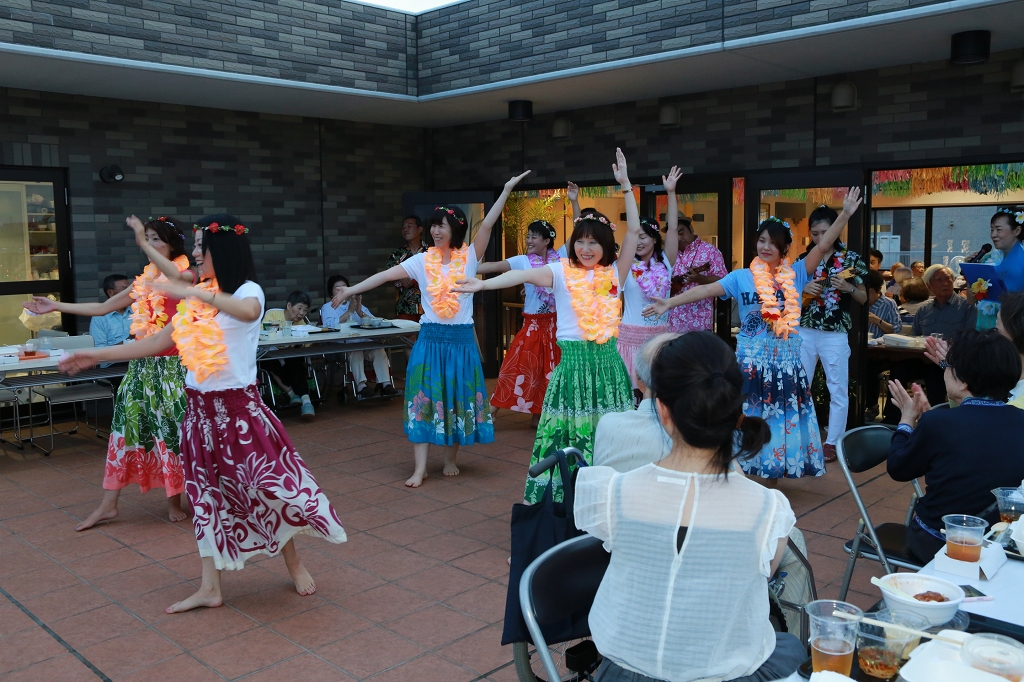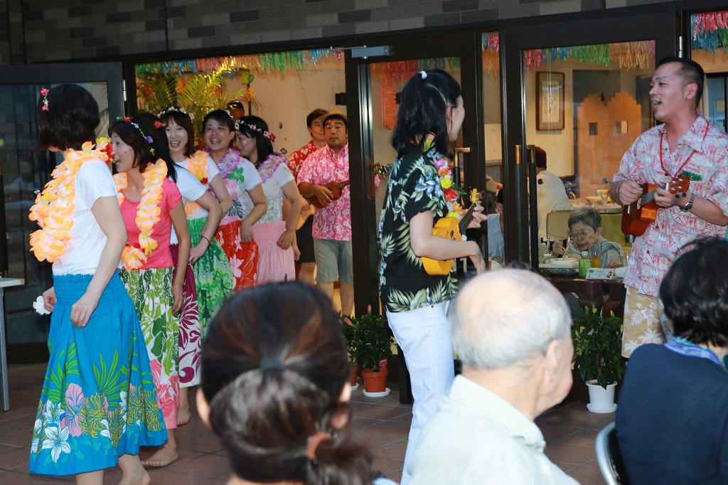 いつもとは違う雰囲気の中、ご入居者の方、ご家族の方が美味しく召し上がる。