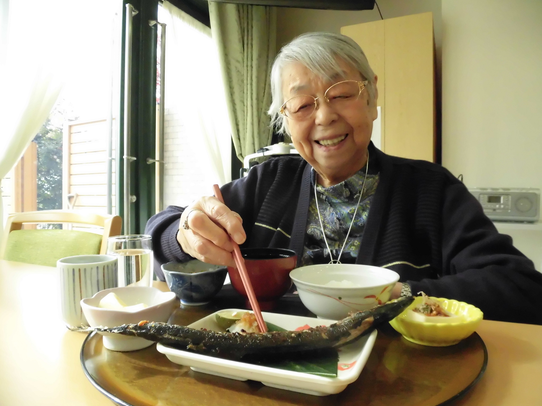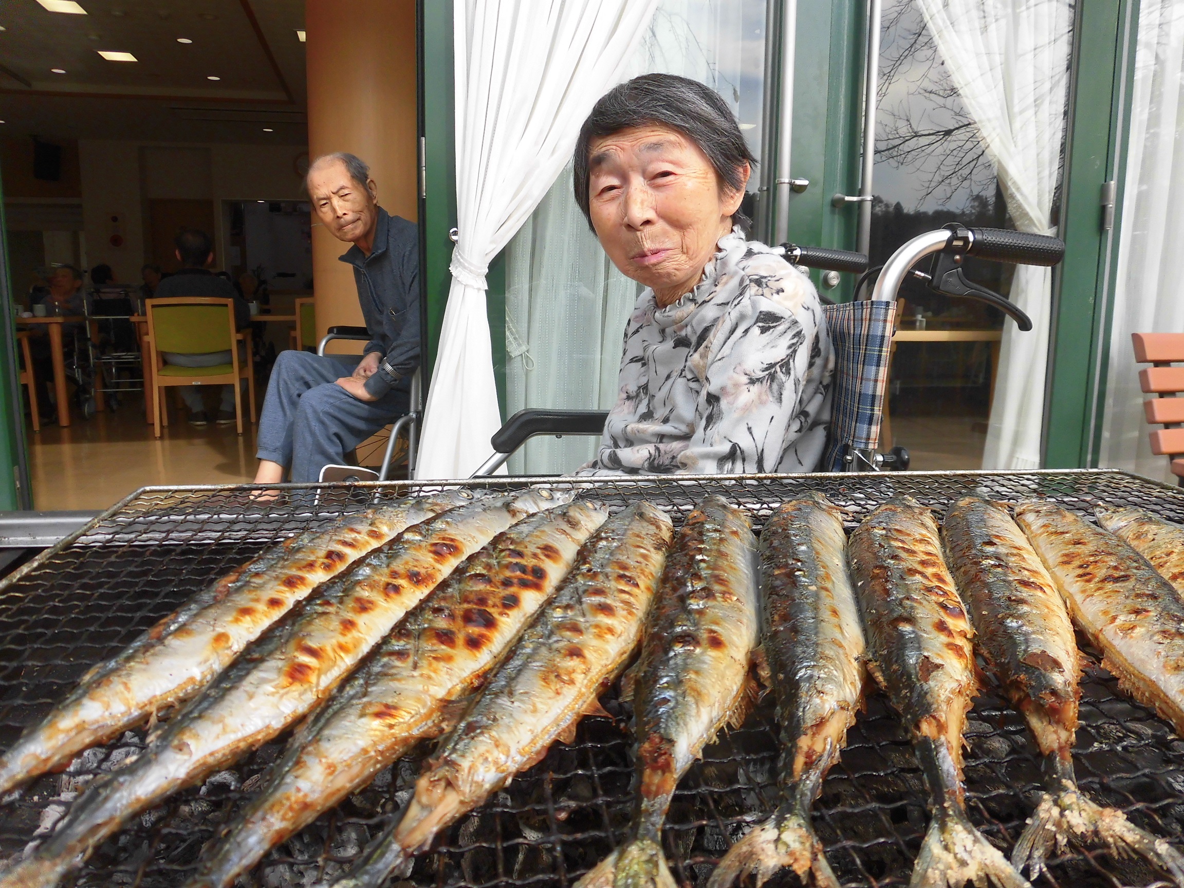 焼き具合を観察されるご入居者もいらっしゃいました。