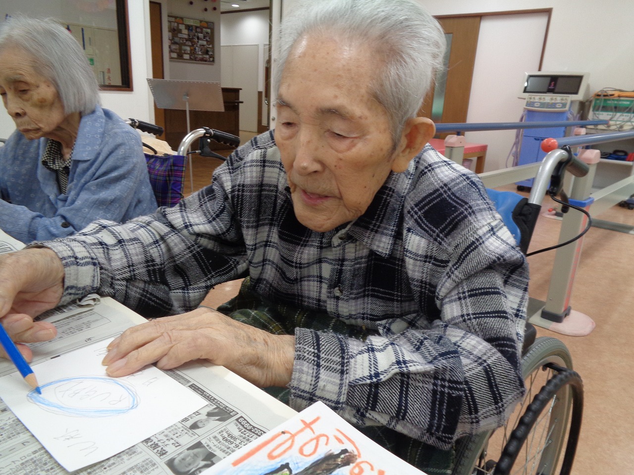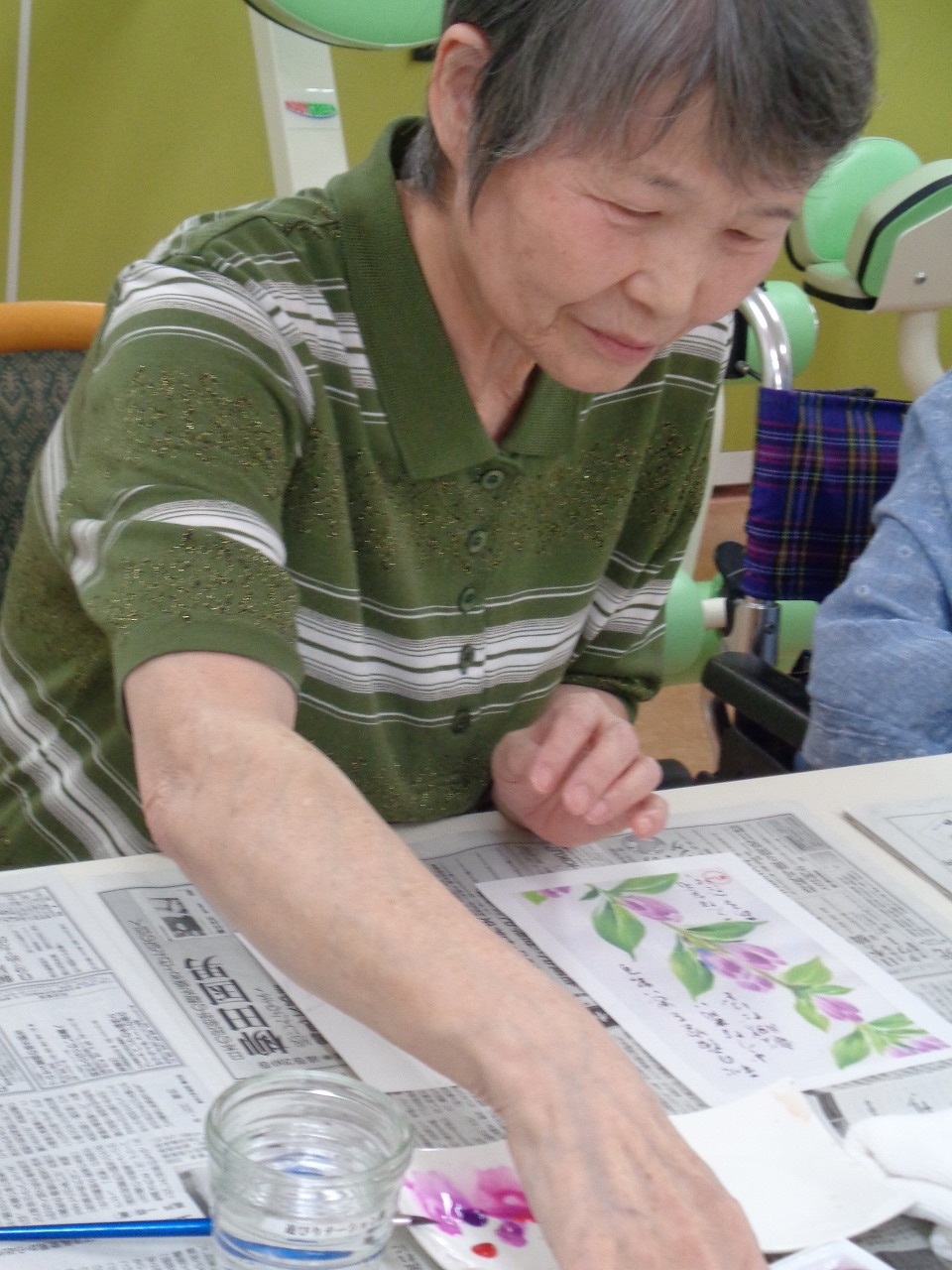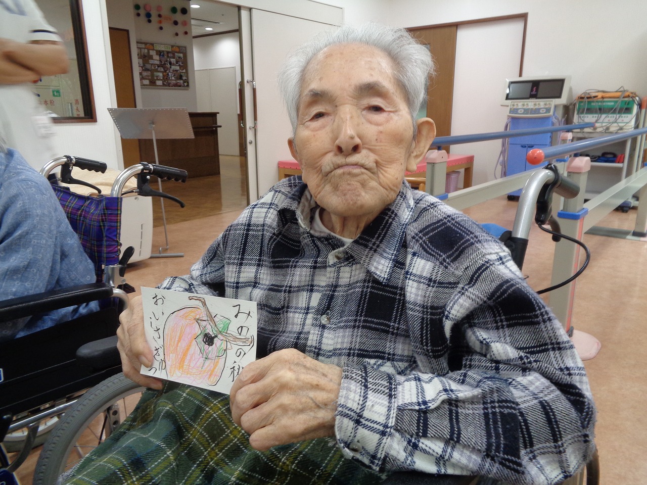 本日は秋をテーマにお好きな絵を描いていただきました。柿やリンドウ、もみじなどを描かれ、