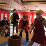 一つ一つちぎり丸め、今年は、あんこ、みたらし、辛味大根、納豆で昼食に召し上がって頂きました。
