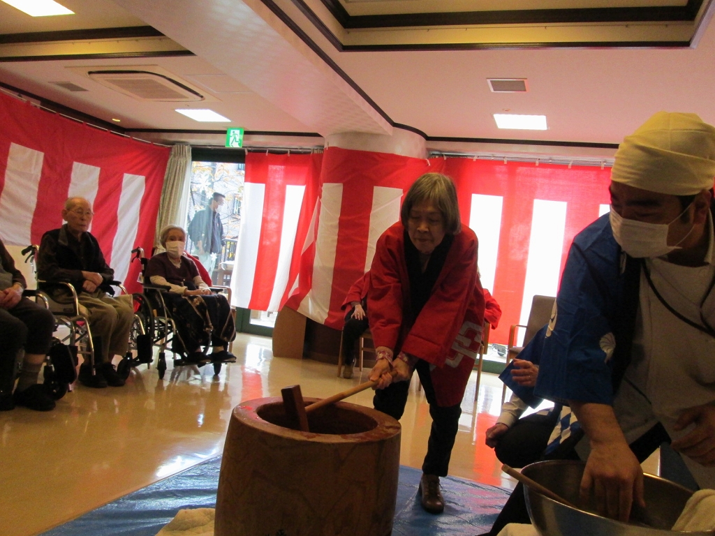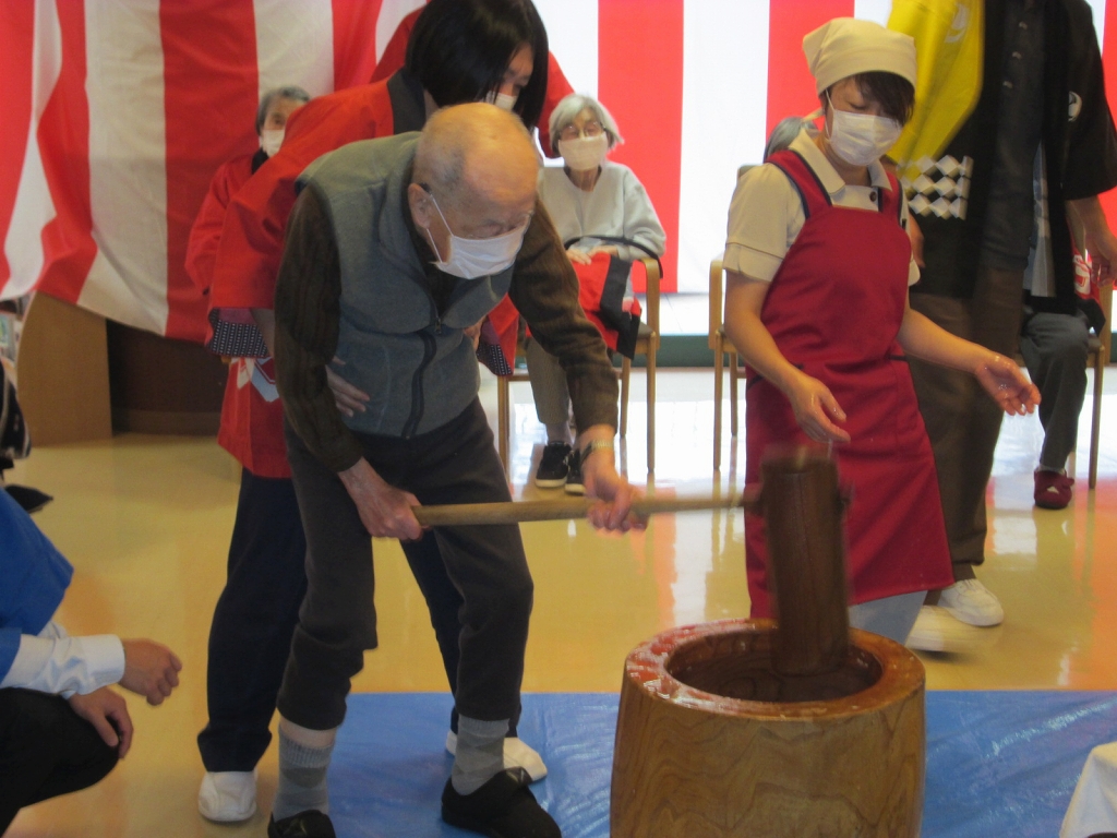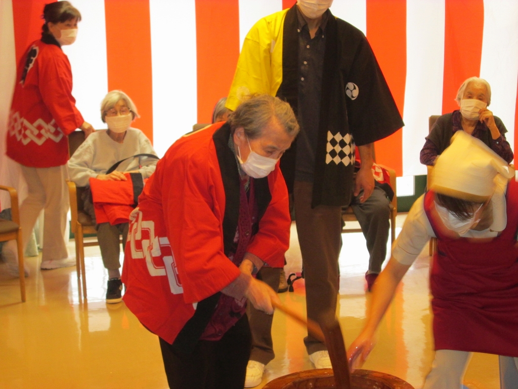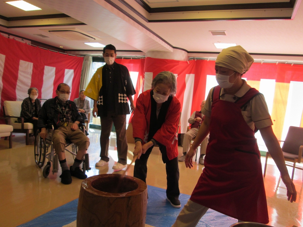 ご入居者の皆様にも、お手伝いいただき美味しい、お餅が出来ました。