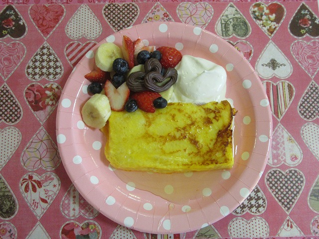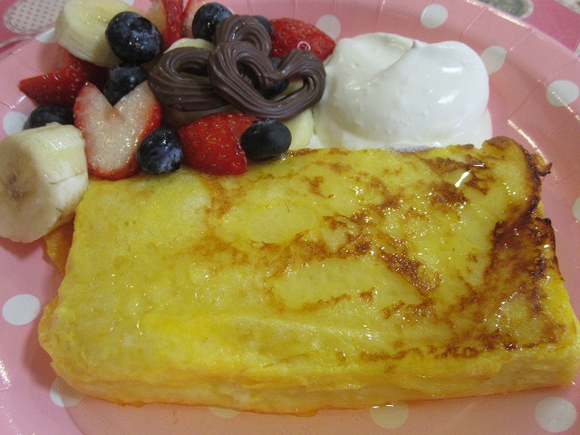フレンチトーストに、チョコやイチゴ、生クリームをトッピング!