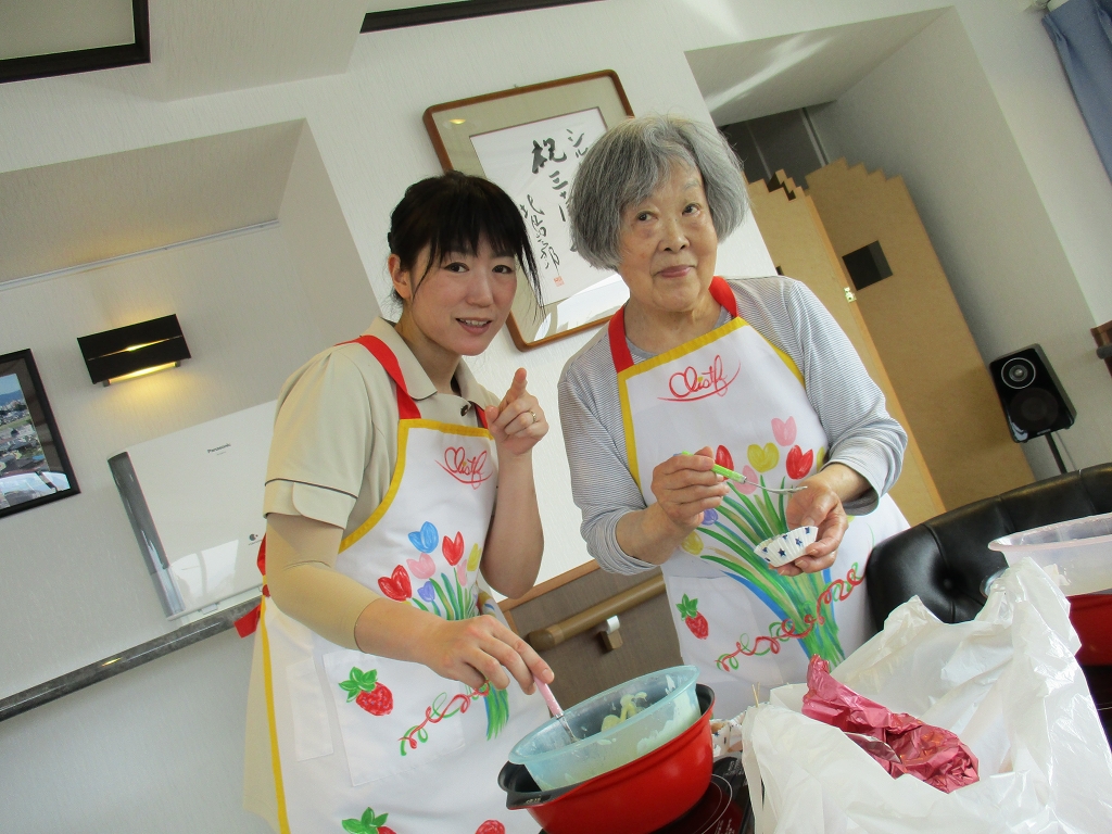 午前中は、女性のご入居者と一緒にチョコレート作り。