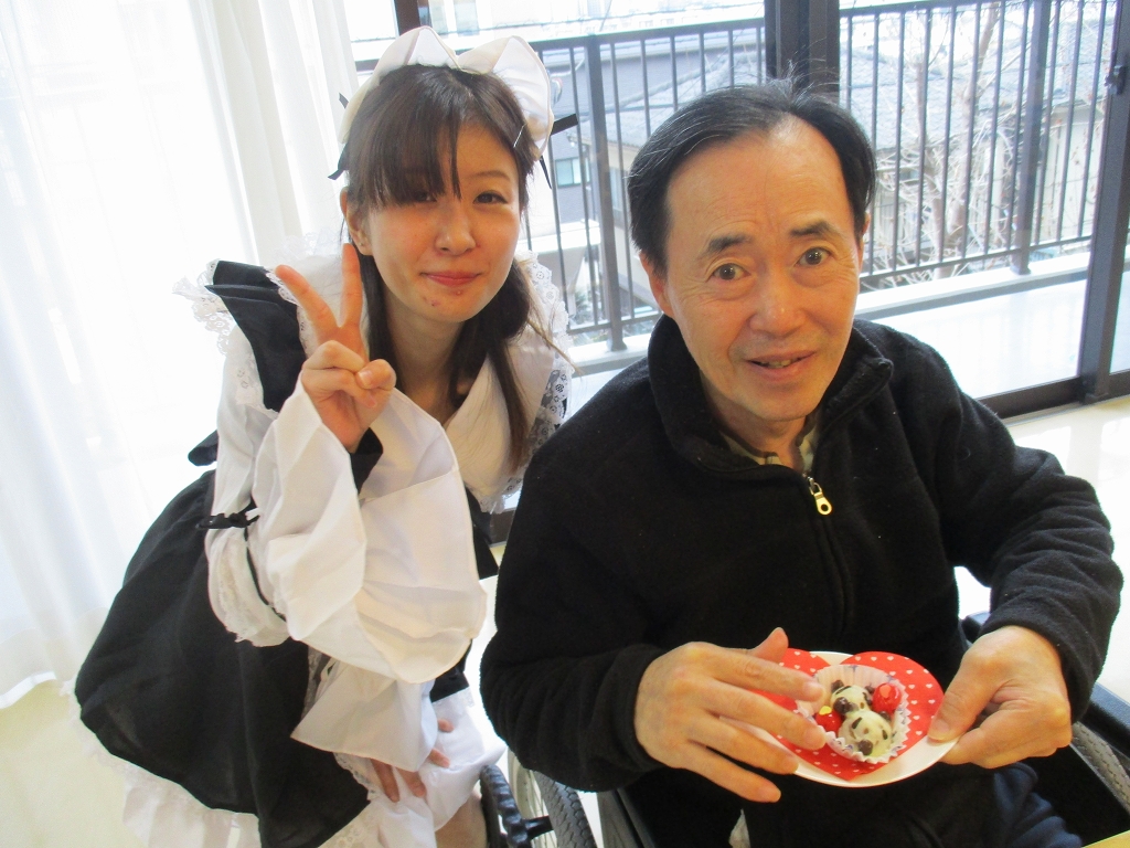 午後のおやつの時間に、職員が衣装を着てご入居者にチョコレートを配らせていただきました。みなさん「おいしい」と仰っていただけました。