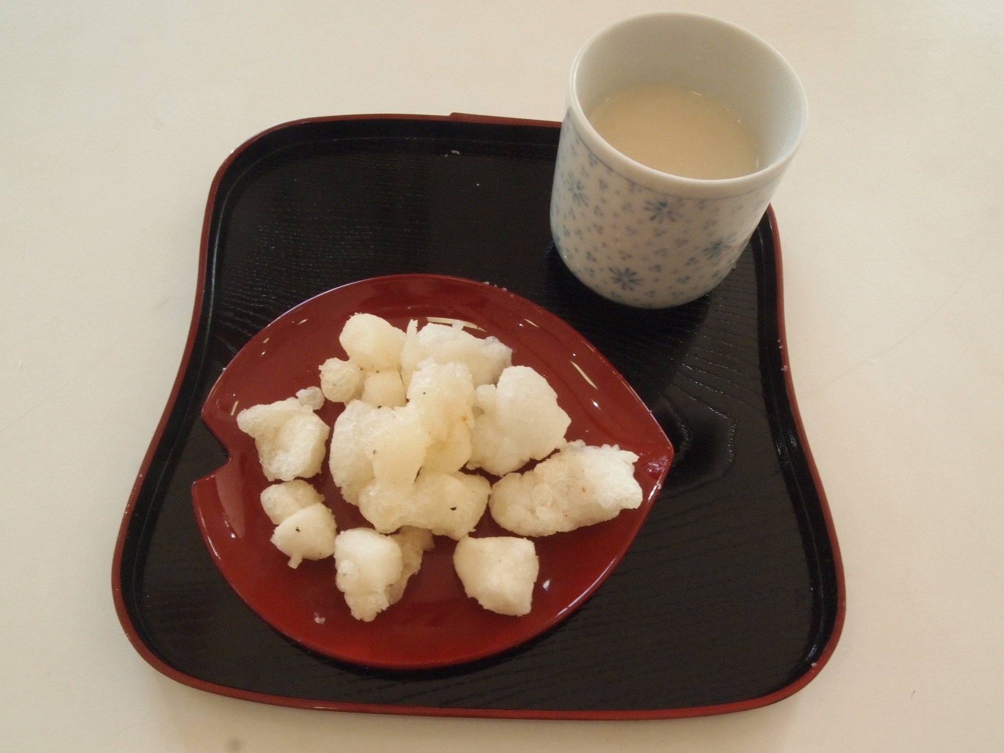 手作りおやつにて、鏡もちでおかきを揚げてみました♪
