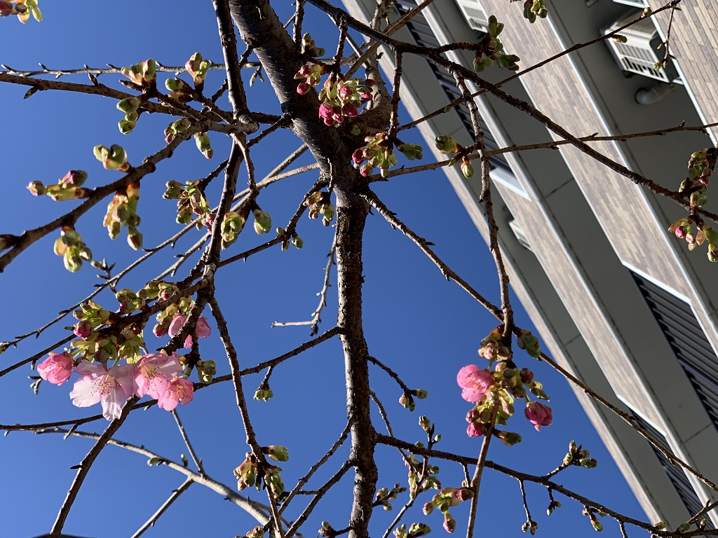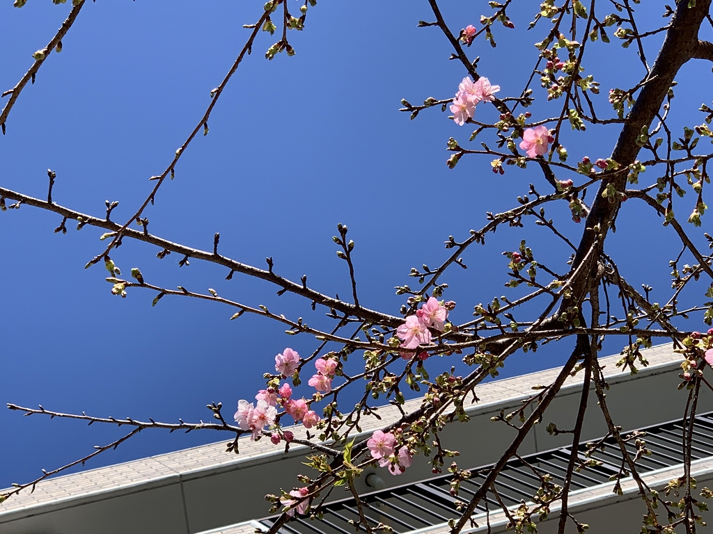 SV八王子のエントランス前の河津さくらが、今年も綺麗に咲き始めました。