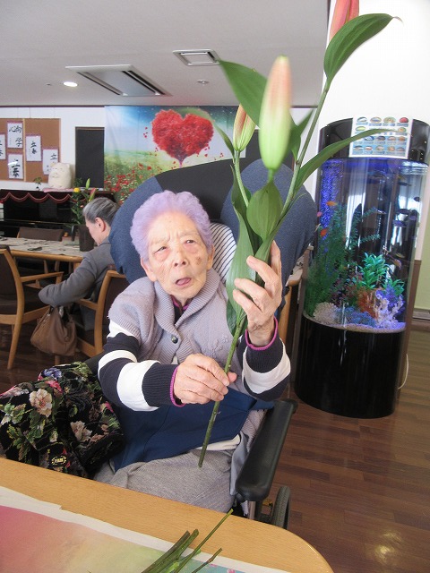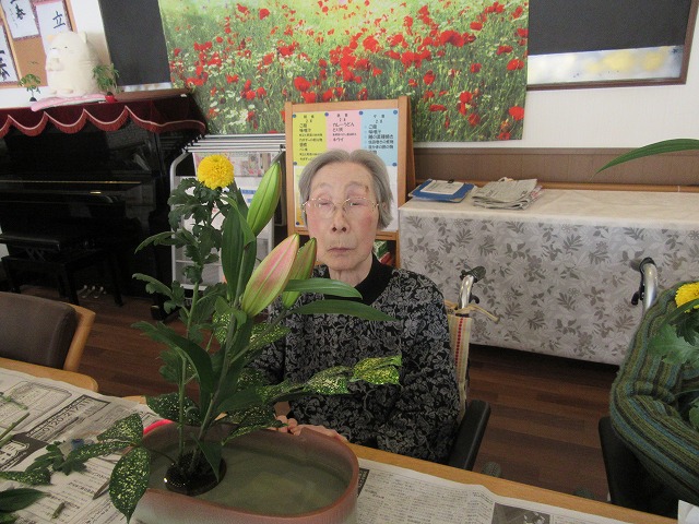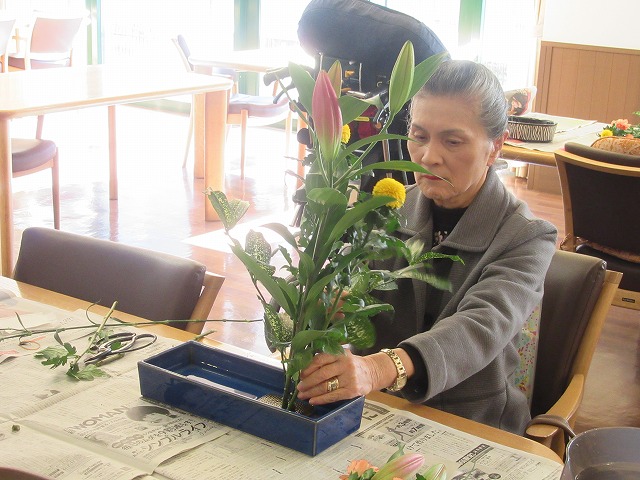 ご入居者の皆様、笑顔でお花を活けていただいています。