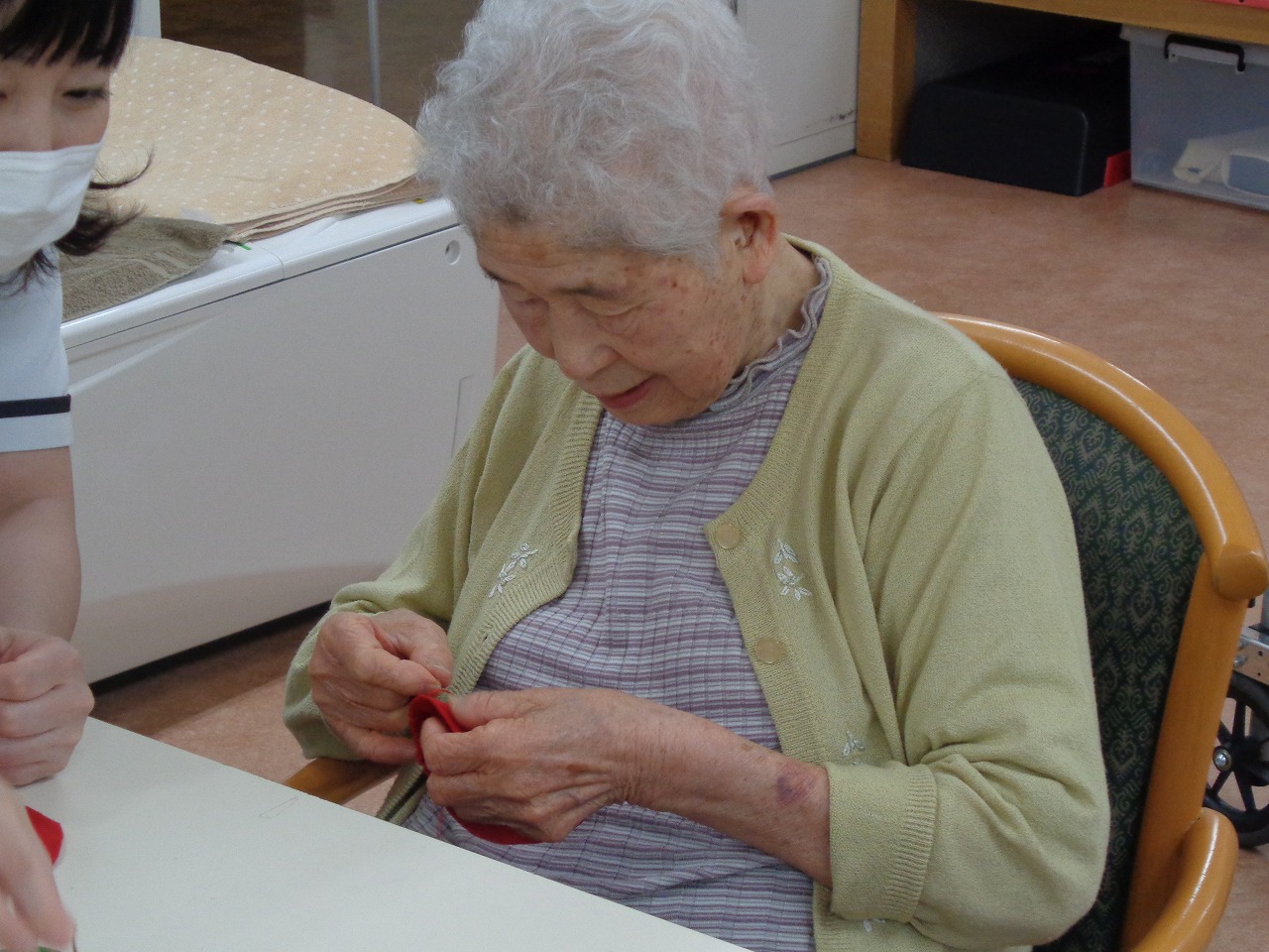 本日の手作りクラブは『フェルトのサクランボ』です。