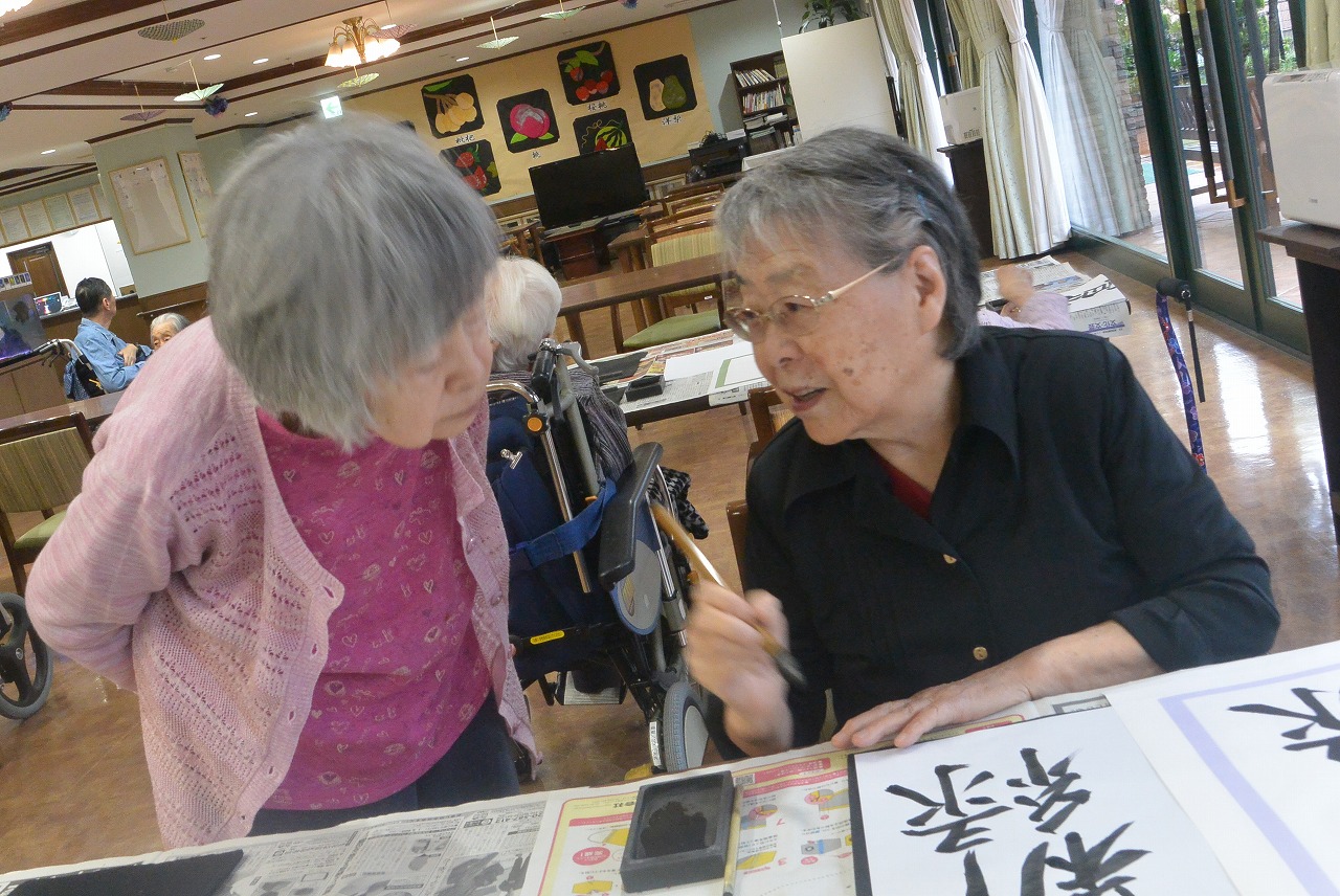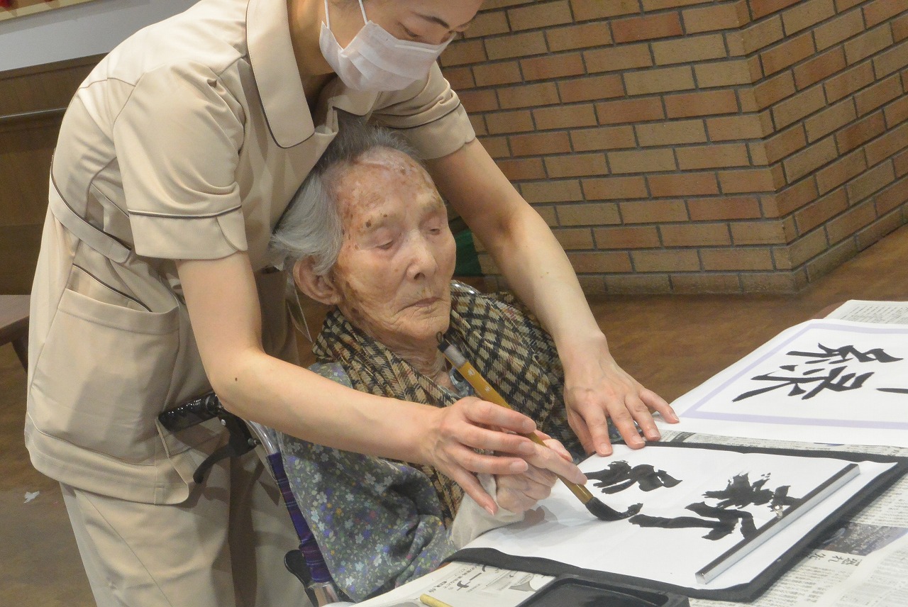 職員と一緒に筆をとり、楽しまれました(^^♪