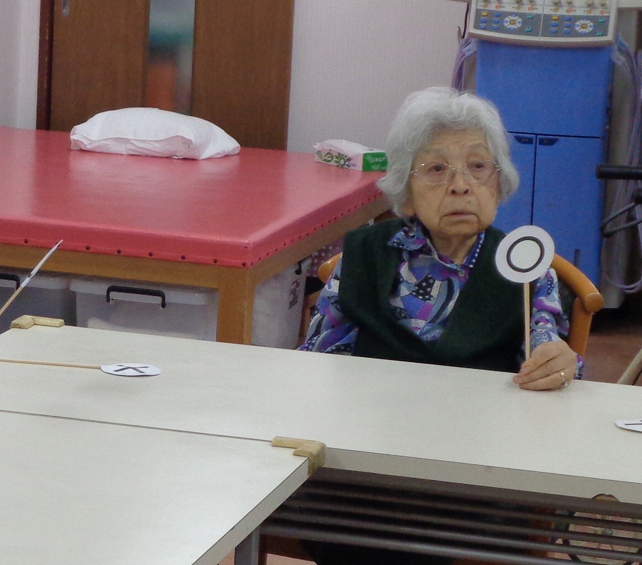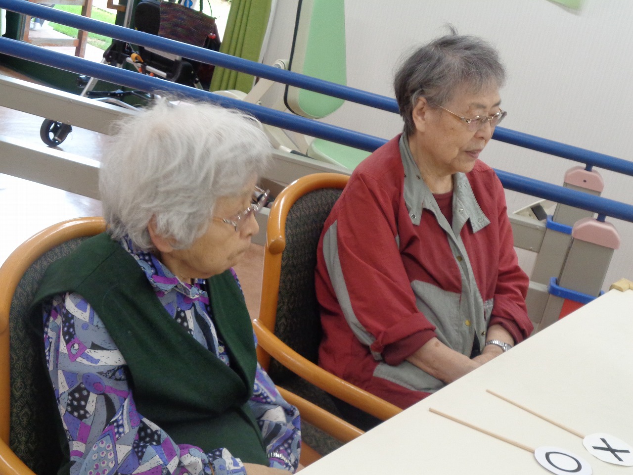 リハビリ室にて学習クラブで“○”“✕”クイズを行いました。