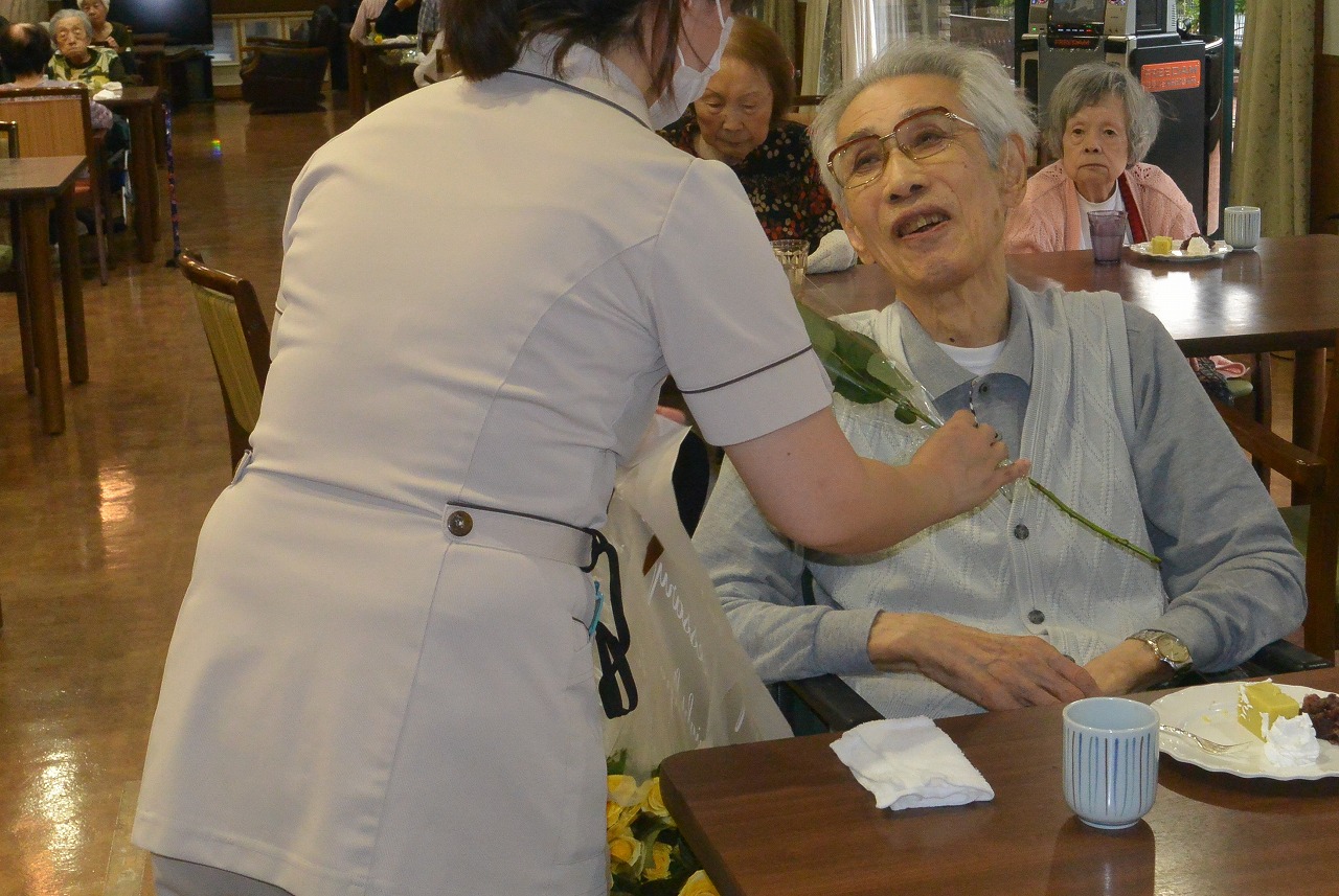 男性のご入居者には日頃の感謝の気持ちを込めて「黄色いバラ」をプレゼントさせていただきました(^^♪