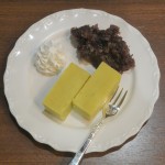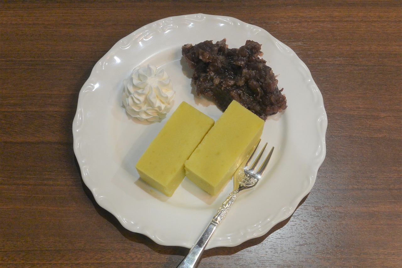 たっぷりのあんことクリームを添えた芋羊羹♪