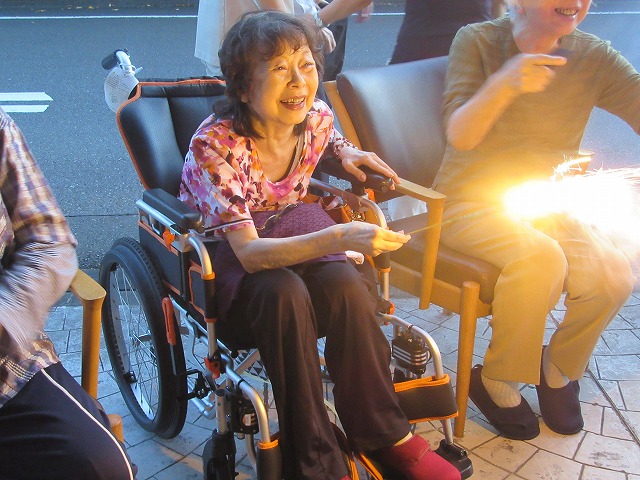 夕食後に日野東館の駐車場での花火会。