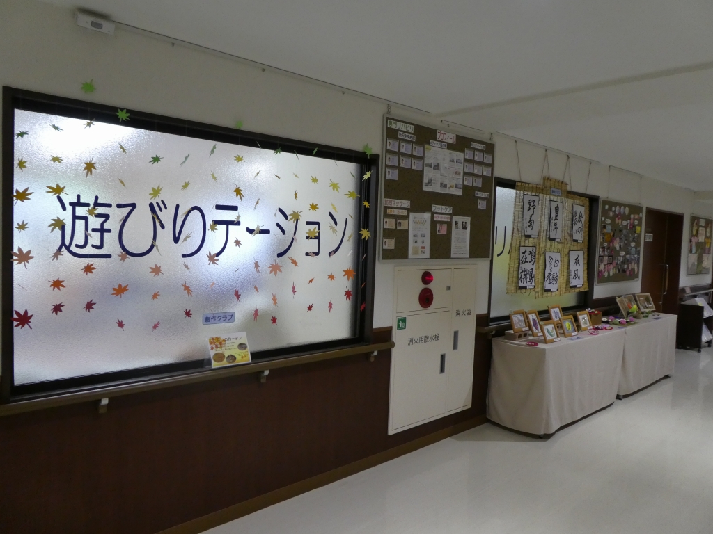 1Fの廊下、リハビリ室前に展示しております♪