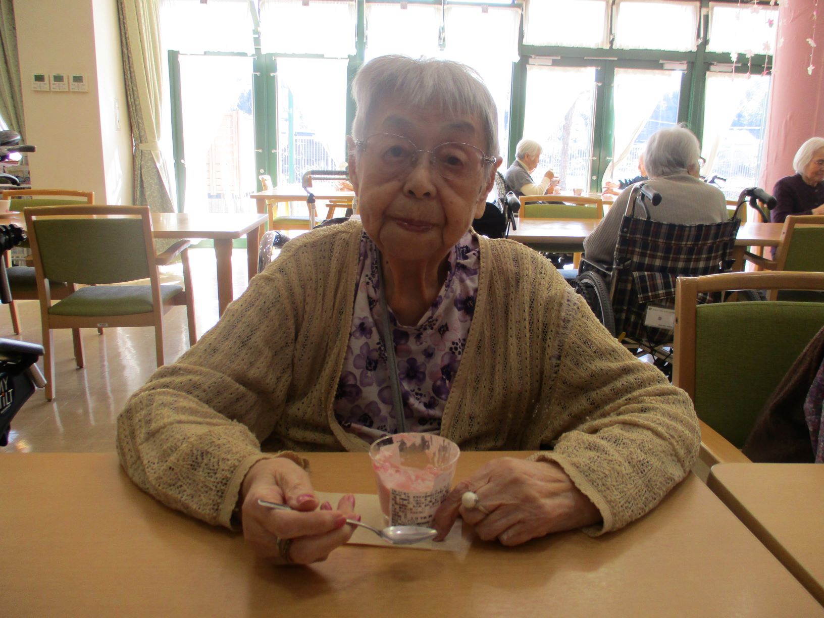 午後のおやつでは、「桜のミルクプリン」を召し上がって頂きました。