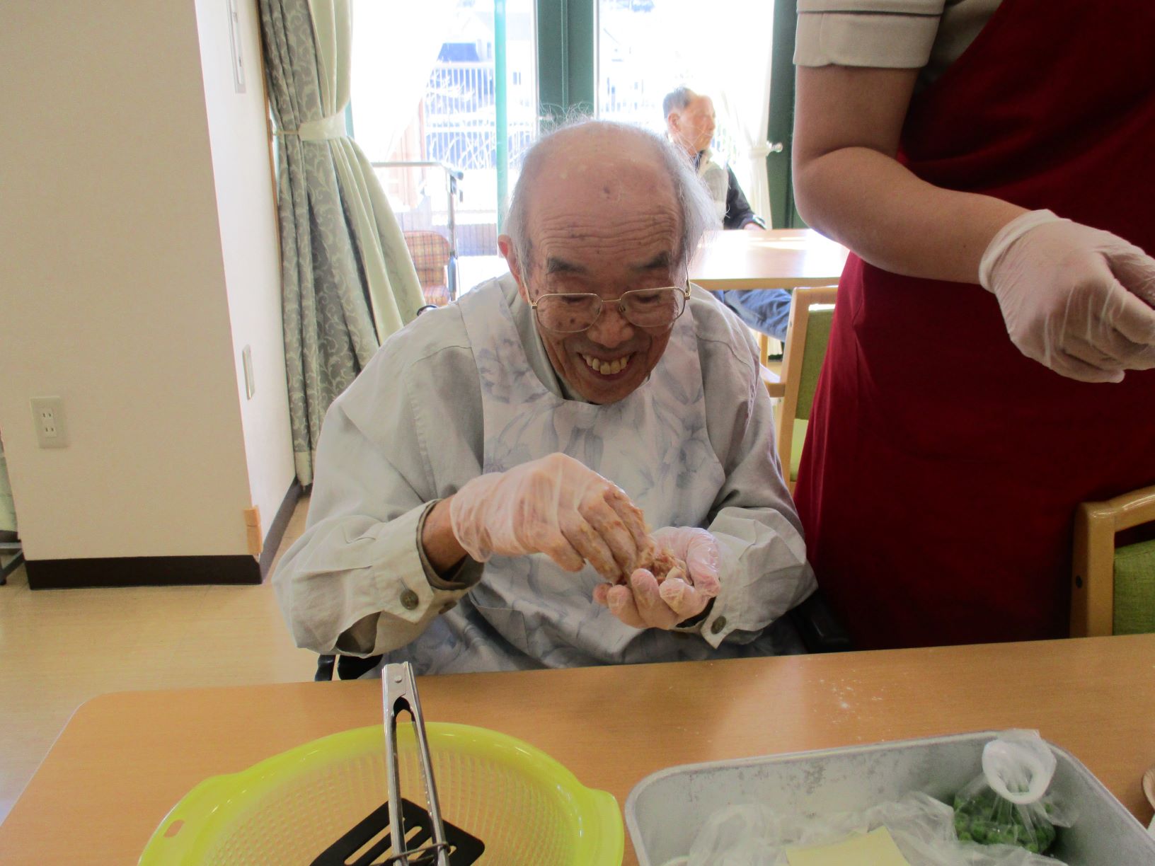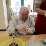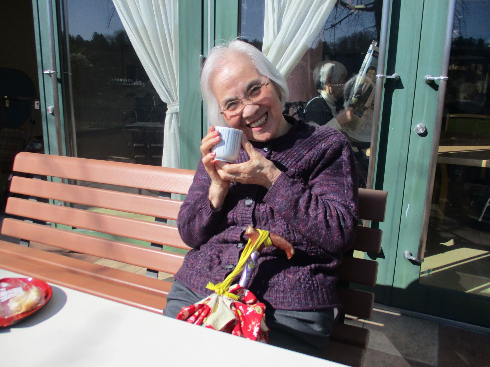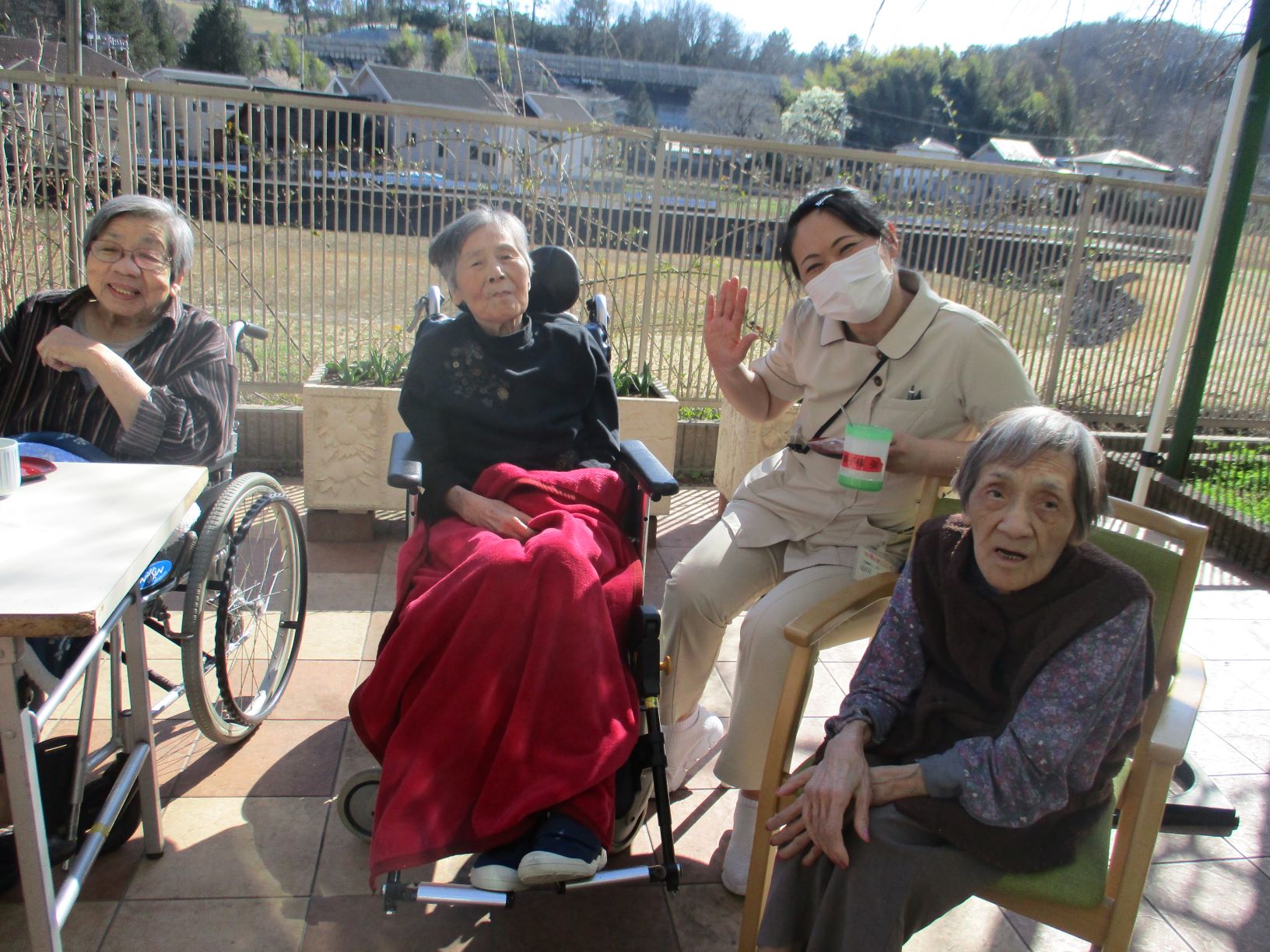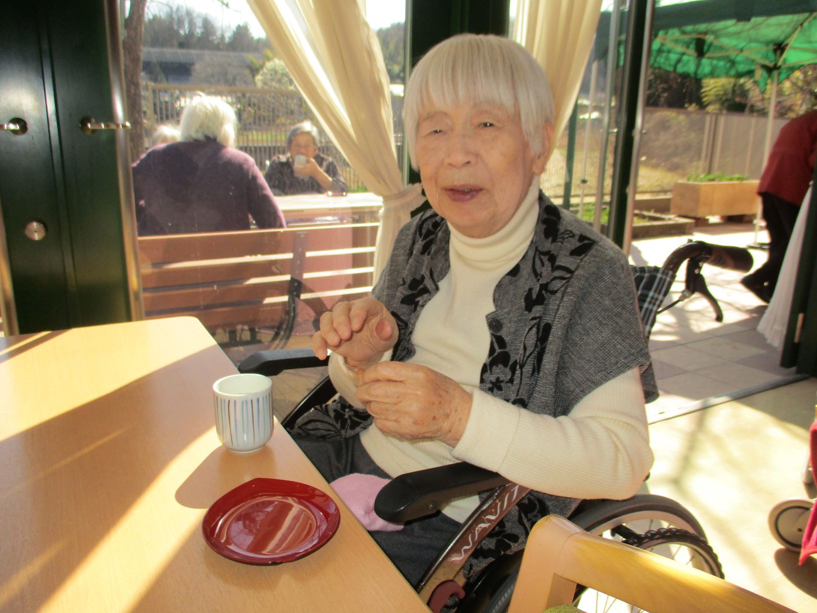 午後の手作りおやつでは、本日はとても暖かくお天気が良いので、