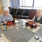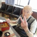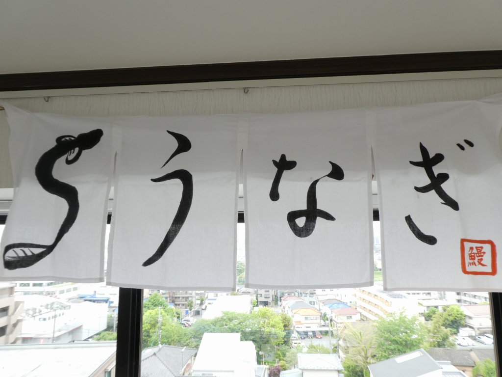 6Fラウンジに、以前ご入居者に書いて頂いたのれんを飾り、