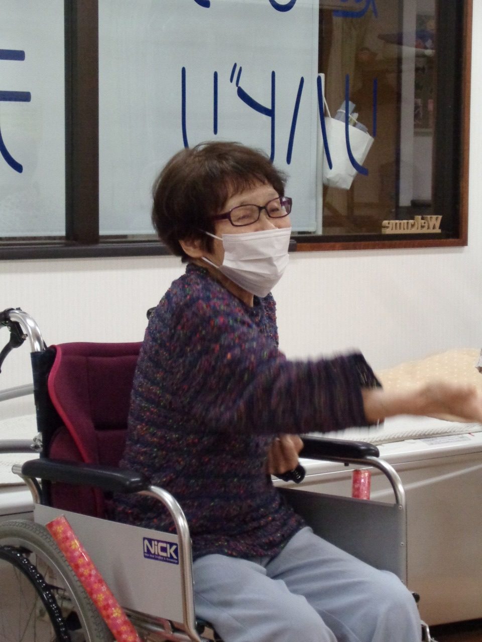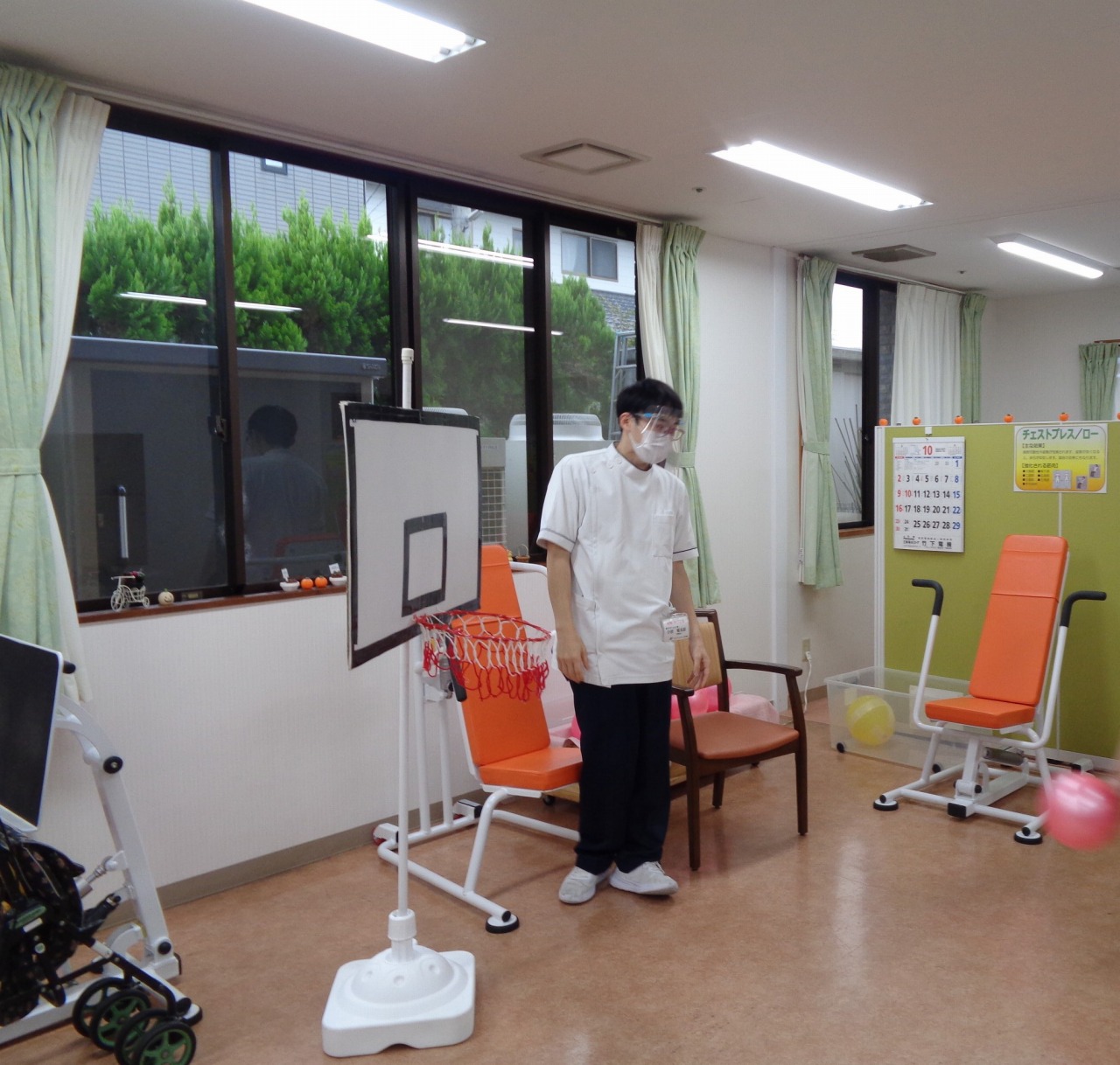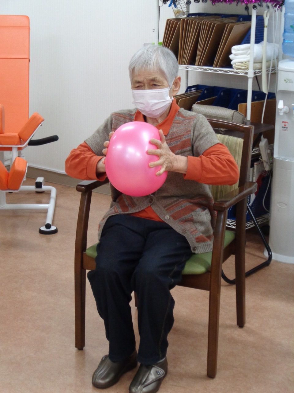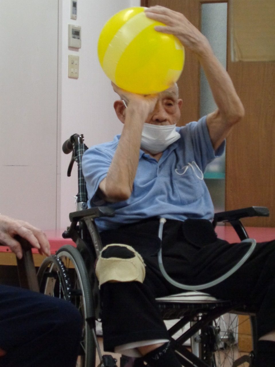 本日は日野リハビリ室にて運動クラブを開催し、ボールを使った上下肢の運動を行いました。ボールをぐるぐると回したり、持ち上げたりという準備運動から、後半はバスケットです。皆様、ボールを投げるのがお上手で、鋭いパスや絶妙なコントロールを披露して下さいました。バスケットゴールへのシュートは特に盛り上がり、拍手や歓声が自然と巻き起こる賑やかな時間でした!