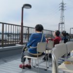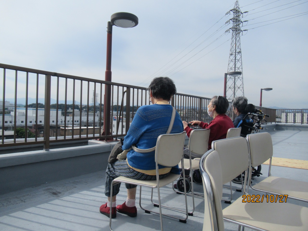多摩の澄んだ空気の中、屋上にて炭火で焼きました♫