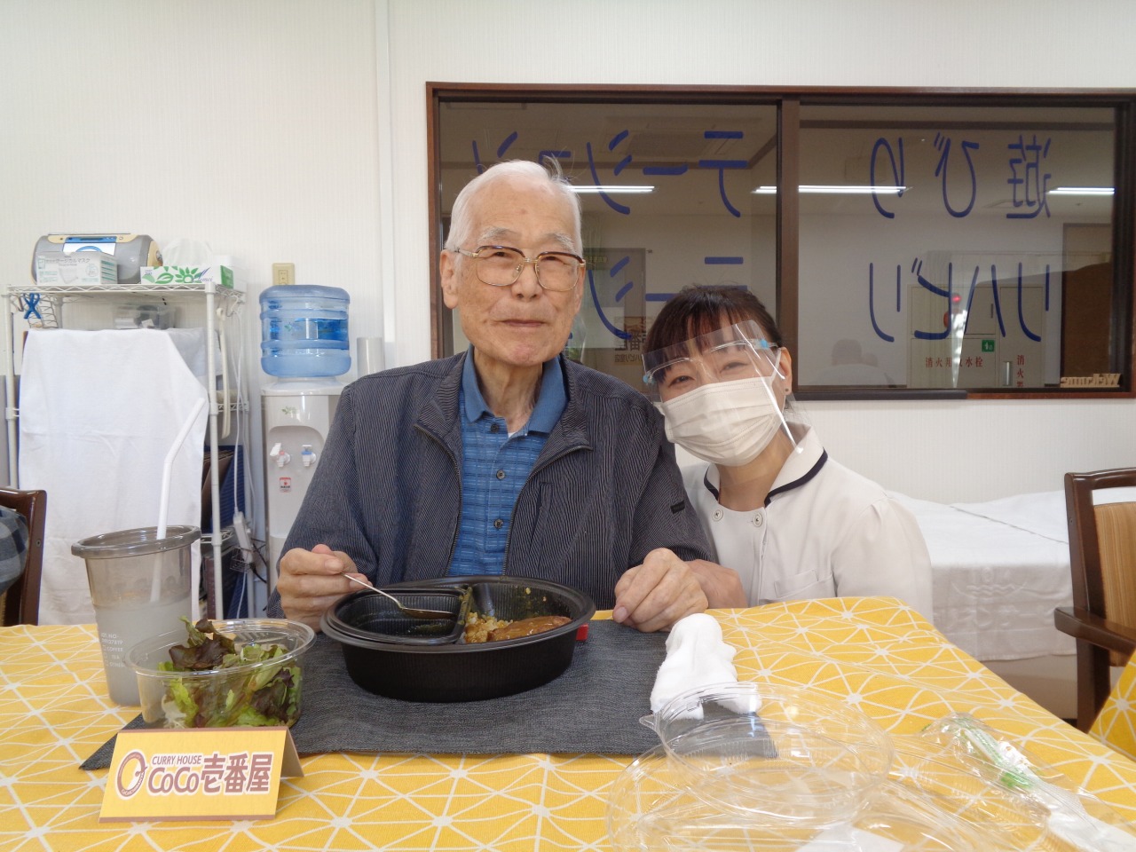 本日は日野リハビリ室にて昼食会を開催し、カレーライス専門店『CoCo壱番屋』のカレーライスをご用意しました。