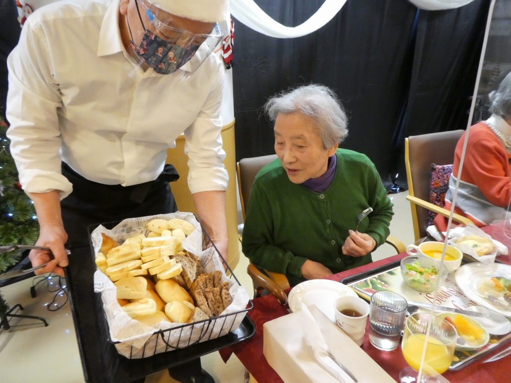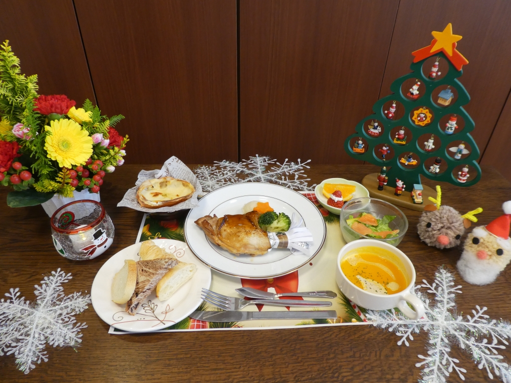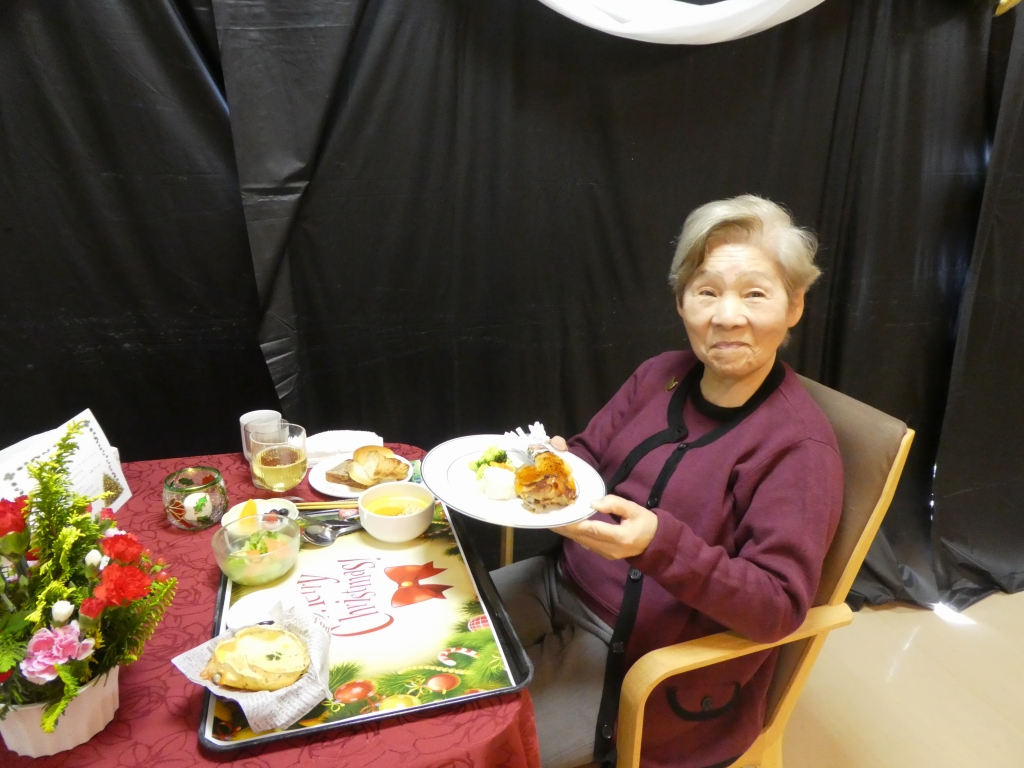 残念ではありましたが、フロアーを飾りつけ、雰囲気を味わっていただき、昼食にクリスマスランチを召し上がって頂きました。
