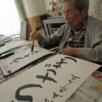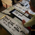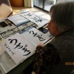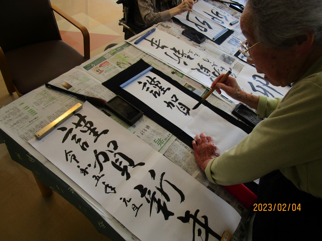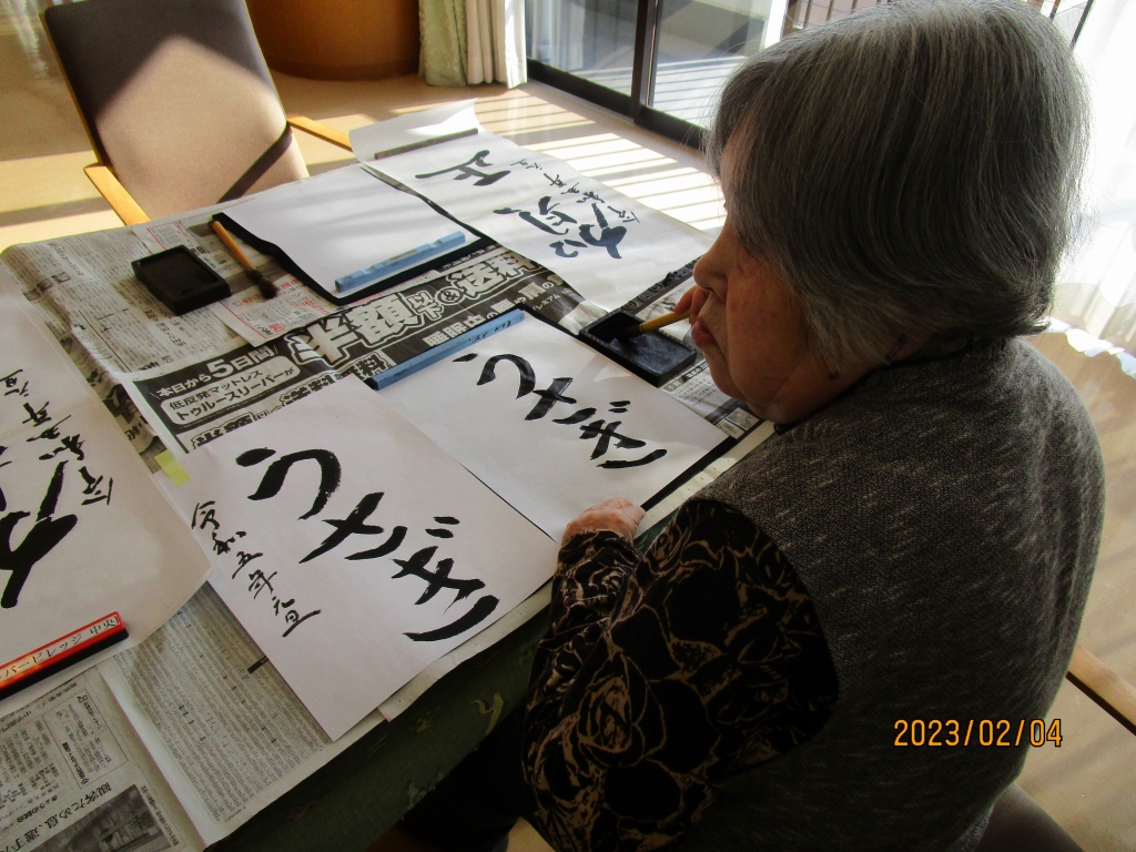 先生の、お手本を見ながら、皆さん上手に筆を運びます。