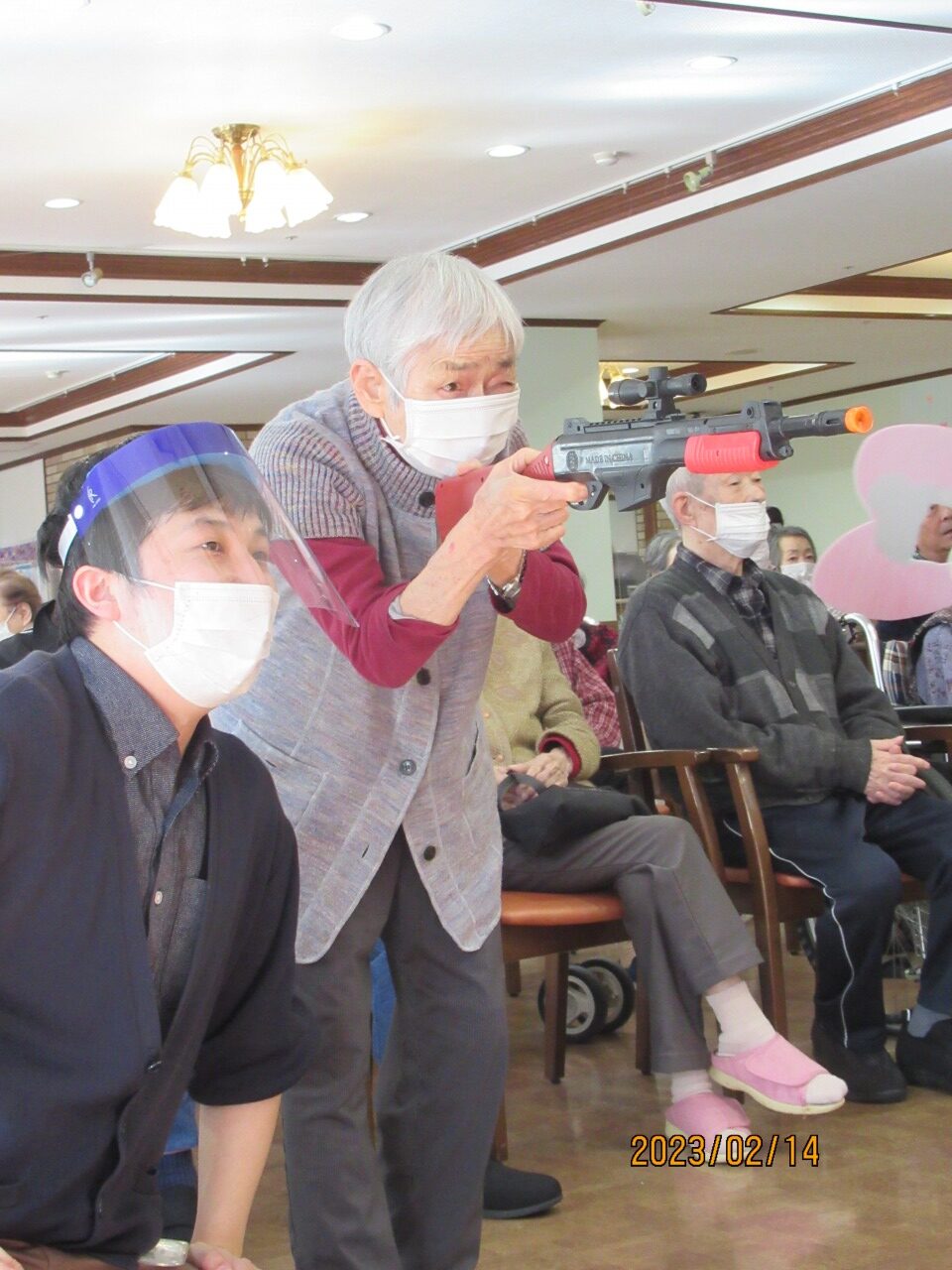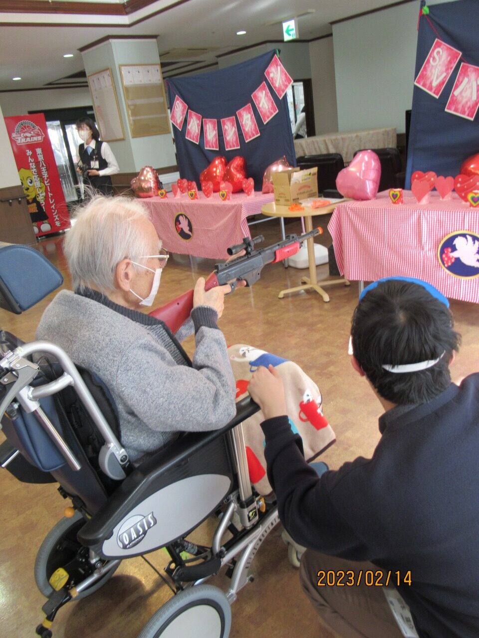 シルバービレッジ日野では、職員の愛の詰まったチロルチョコレートを射的でゲットする方式のバレンタイン(^^;;