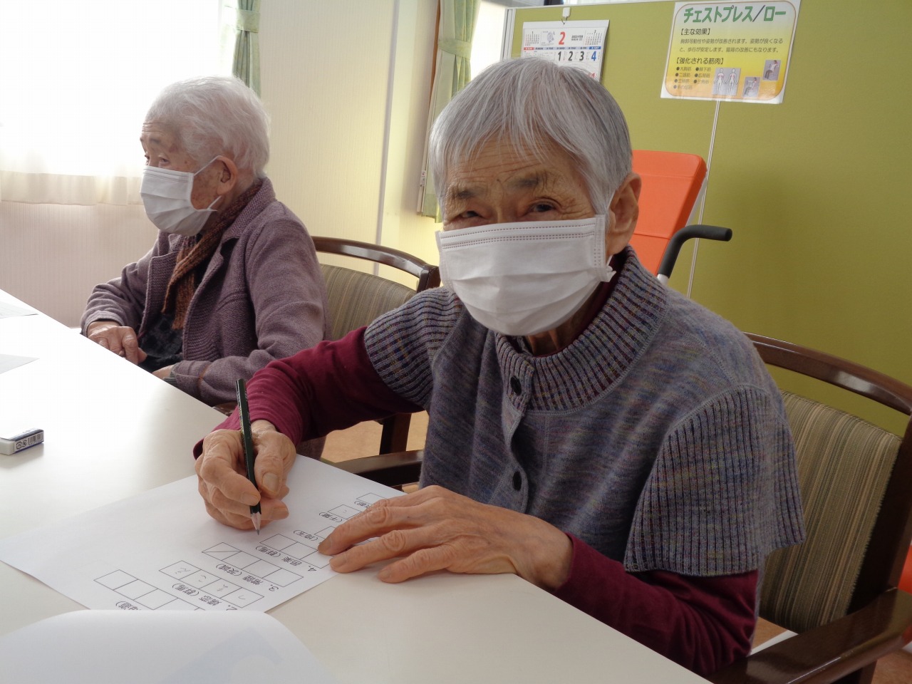 本日は日野リハビリ室にて学習クラブを開催しました。今回は全国各地にある、難しい読み方の地名をクイズにしました。邑楽(おうら)、先斗(ぽんと)、人里(へんぼり)などなど、私は聞いたことも無いような地名ばかりでしたが、さすがは皆様、知識や経験がたくさんございます。旅行で行ったことがあったり、偶然に思い出の地名があったり、普段は伺うことのできないお話を聴くことができ、私にとって貴重な時間になりました。