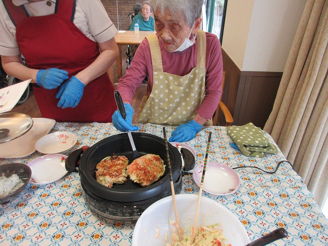 今月は明太チーズお好み焼きとおにぎりを作りました(^^♪