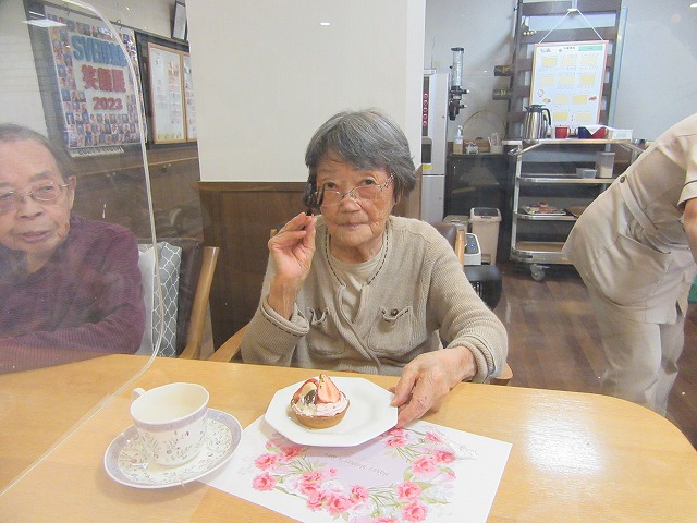 その後、手作りおやつ(イチゴタルト)を召し上がって頂き