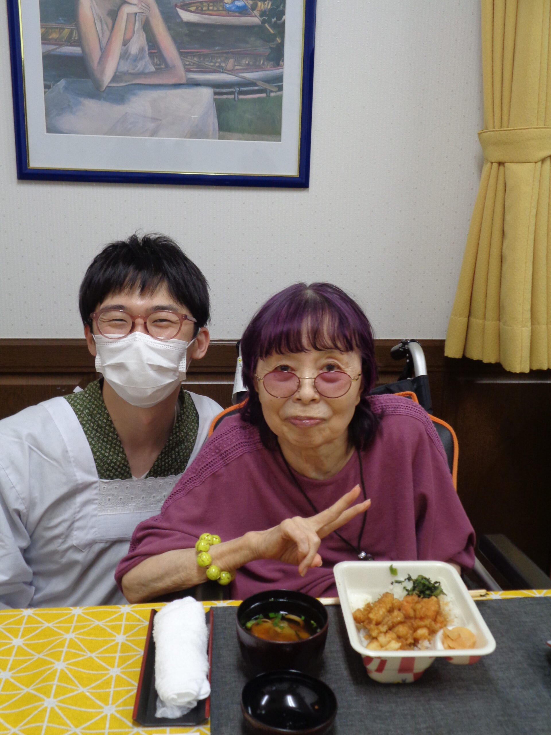 「てんや」というと味が濃くてガッツリとしたイメージだと思いますが、実はそのような天丼がご入居者の皆様のお口に合うのか少し心配しておりました。しかし、蓋を開けてみると皆様口々に「美味しい!」「普段あまり食べられないからご飯の量を減らしているのに、気が付いたら全部食べれちゃった!」と多くの方が完食されておりました。
