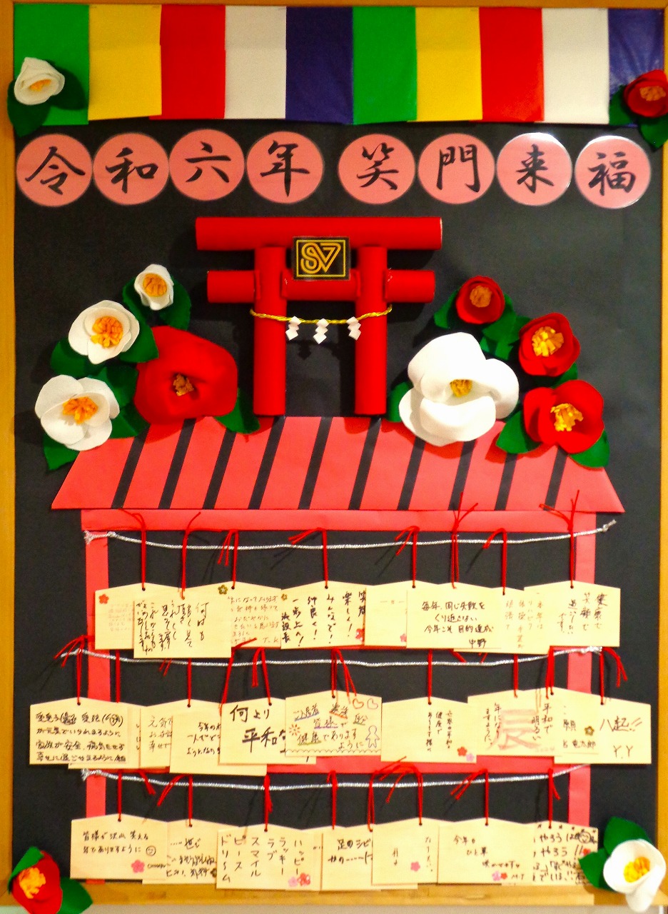 皆様の想いを絵馬に乗せ、作品ボードに飾らせていただきました。