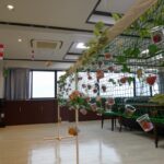 風船バレー用のネットに、ミニカップを付けていちごをセット!