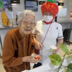 職員もいちごの被り物をして一緒に楽しみました。