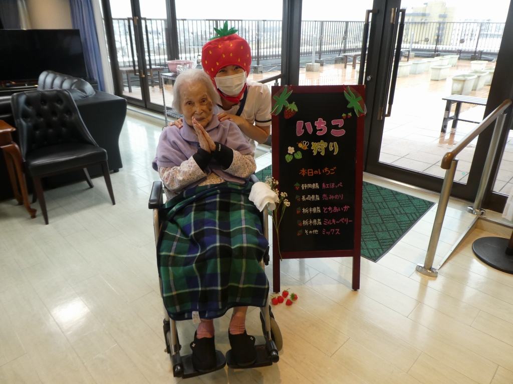 なんと!施設内で『いちご狩り』を行いました。(*^-^*)
