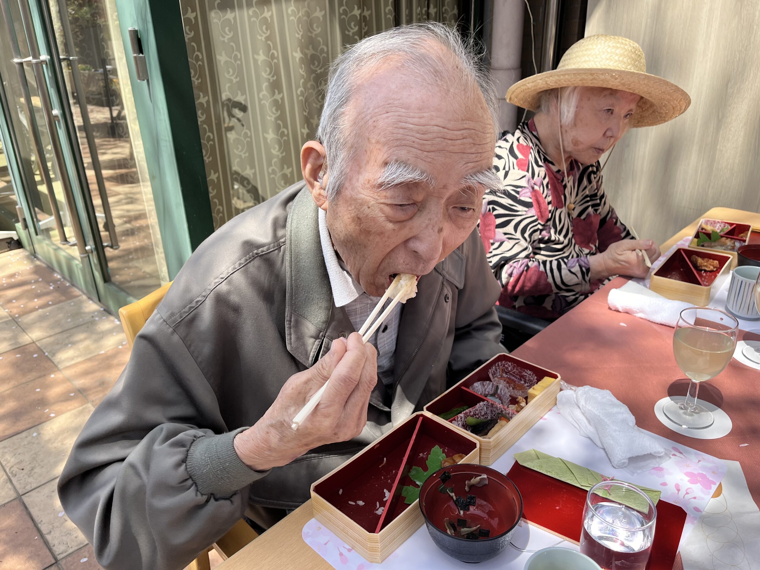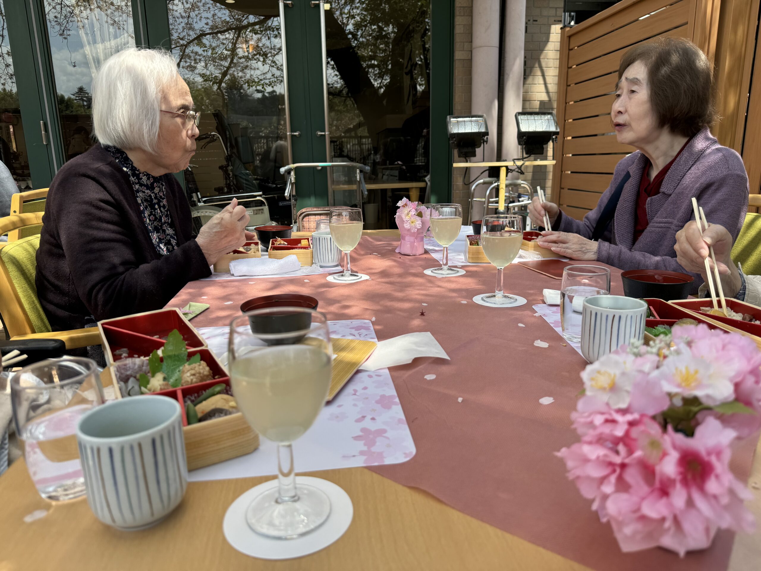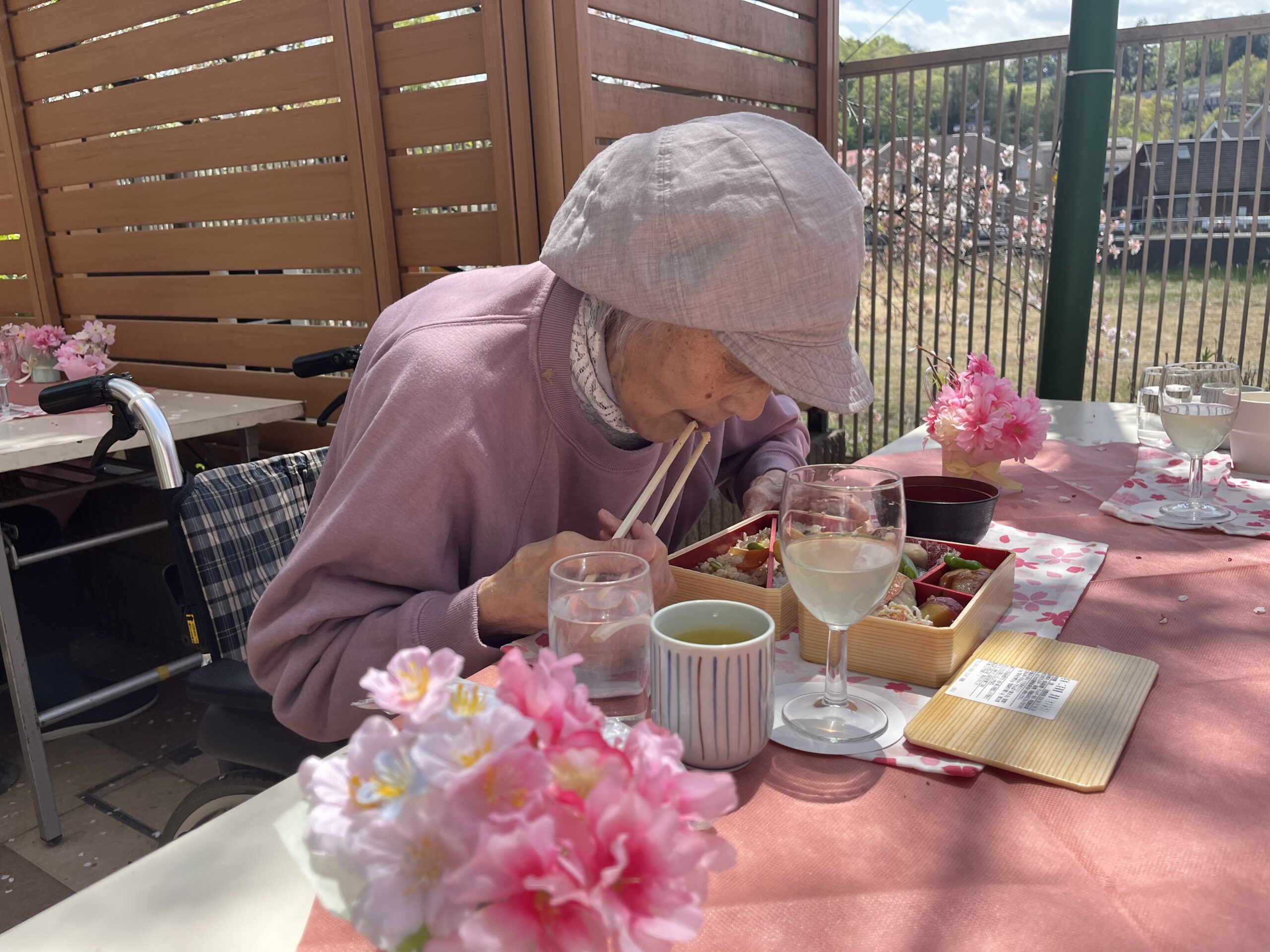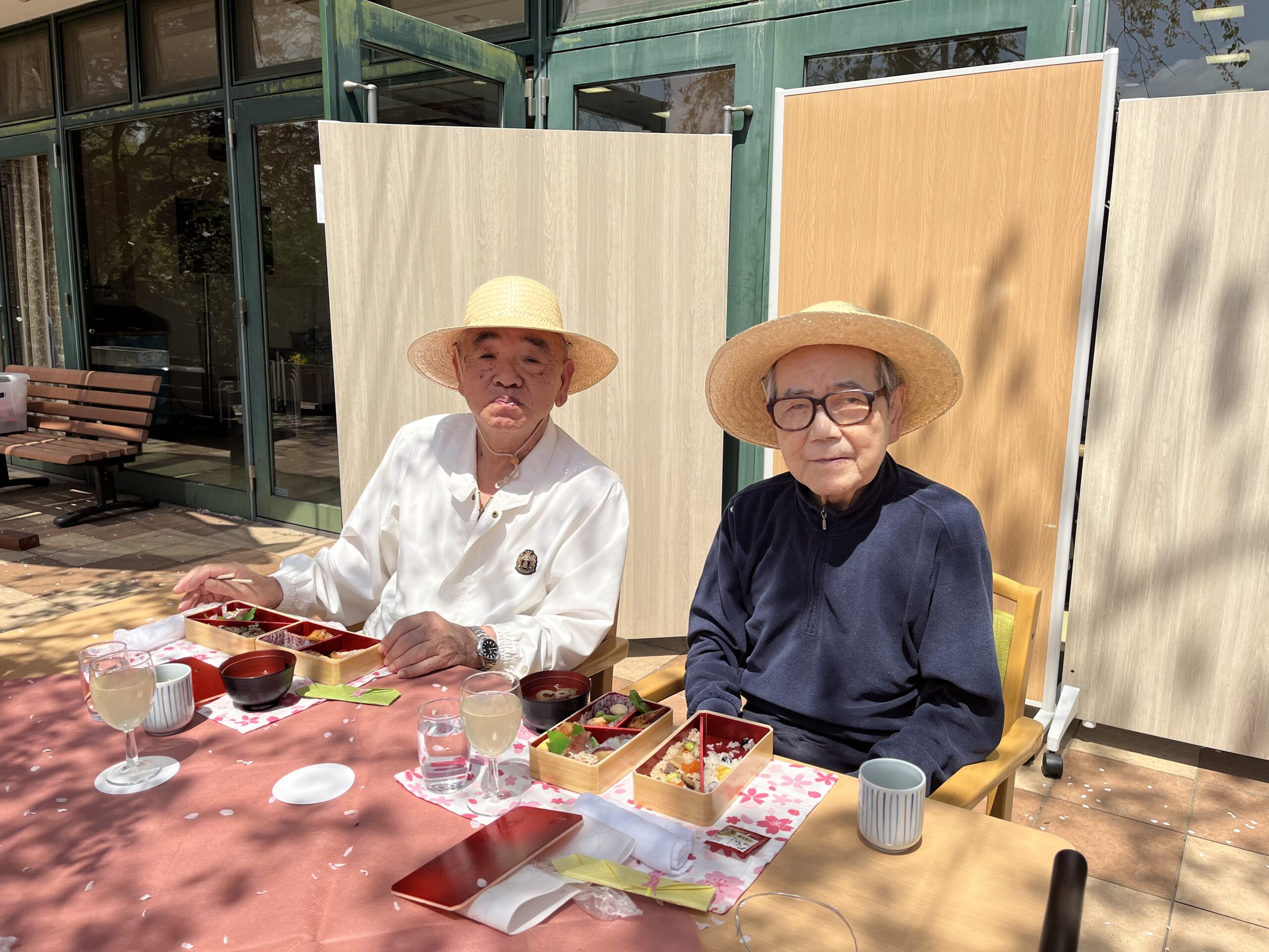 春らしい陽気の中、テラスで『たごさく』のお弁当を召し上がって頂きました(^^♪
